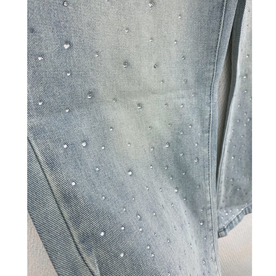 ヴィンテージ加工を施したデニムに小ぶりながらも存在感のあるラインストーンが煌めくエッジの効いた1本。