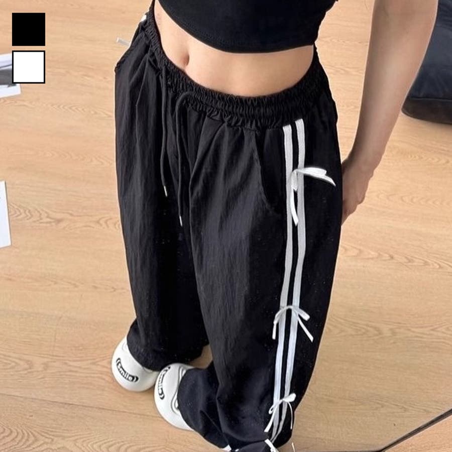 【春夏新作】サイドリボンライン入りワイドパンツ