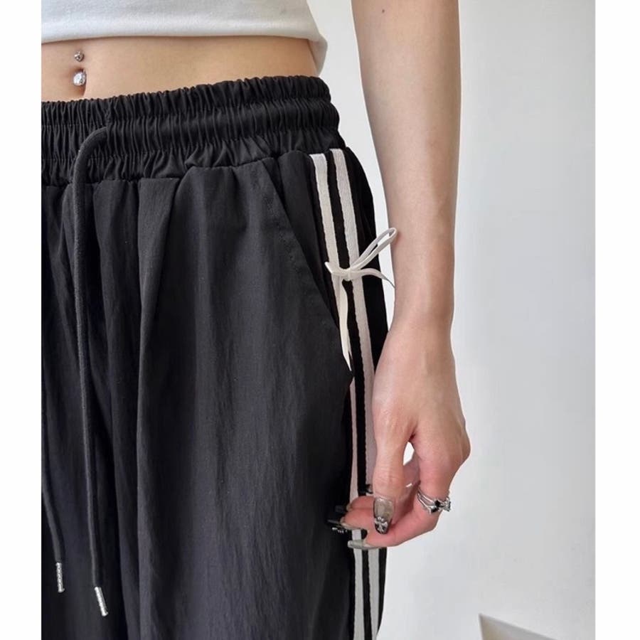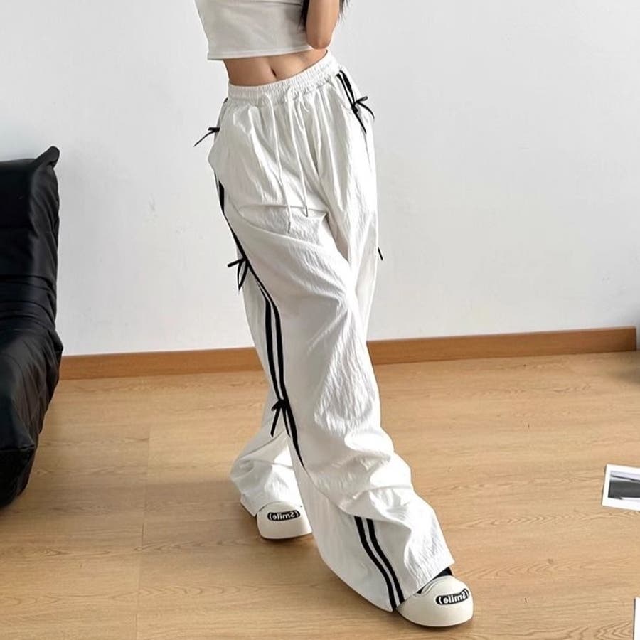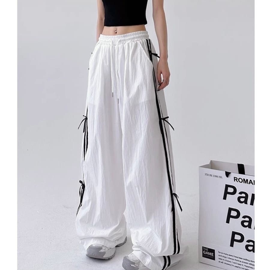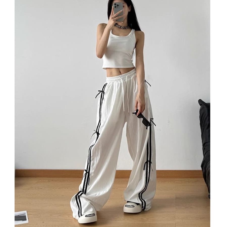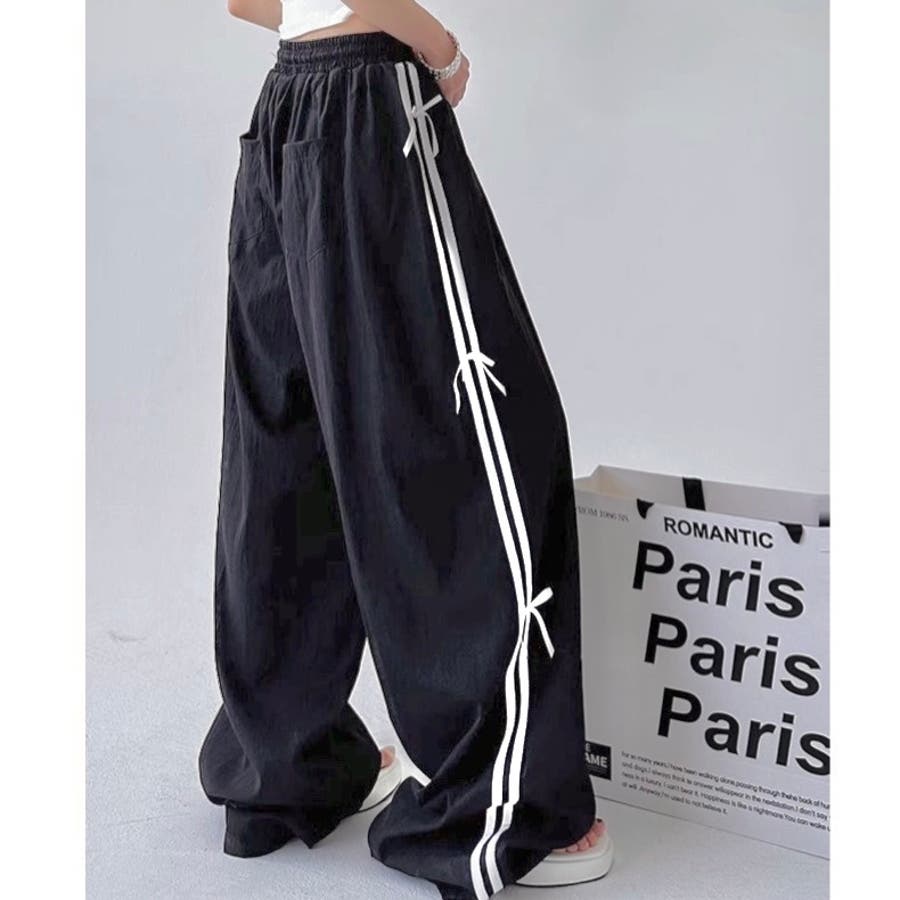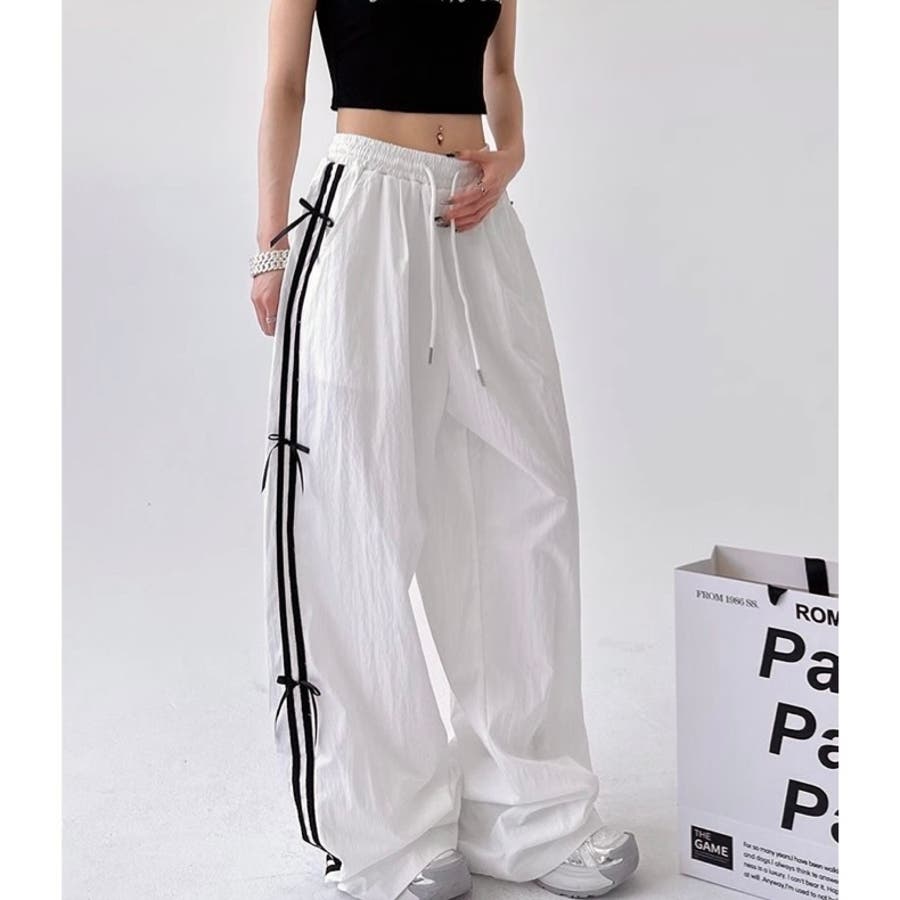 大人 カジュアル きれいめ 韓国ファッション 韓国コーデ Y2K オフィスカジュアル トラックパンツ イージーパンツ ワイドパンツ ウエストゴム ライン入り サイドライン 春服 夏服 秋服 10代 20代 30代 40代 春 夏 秋