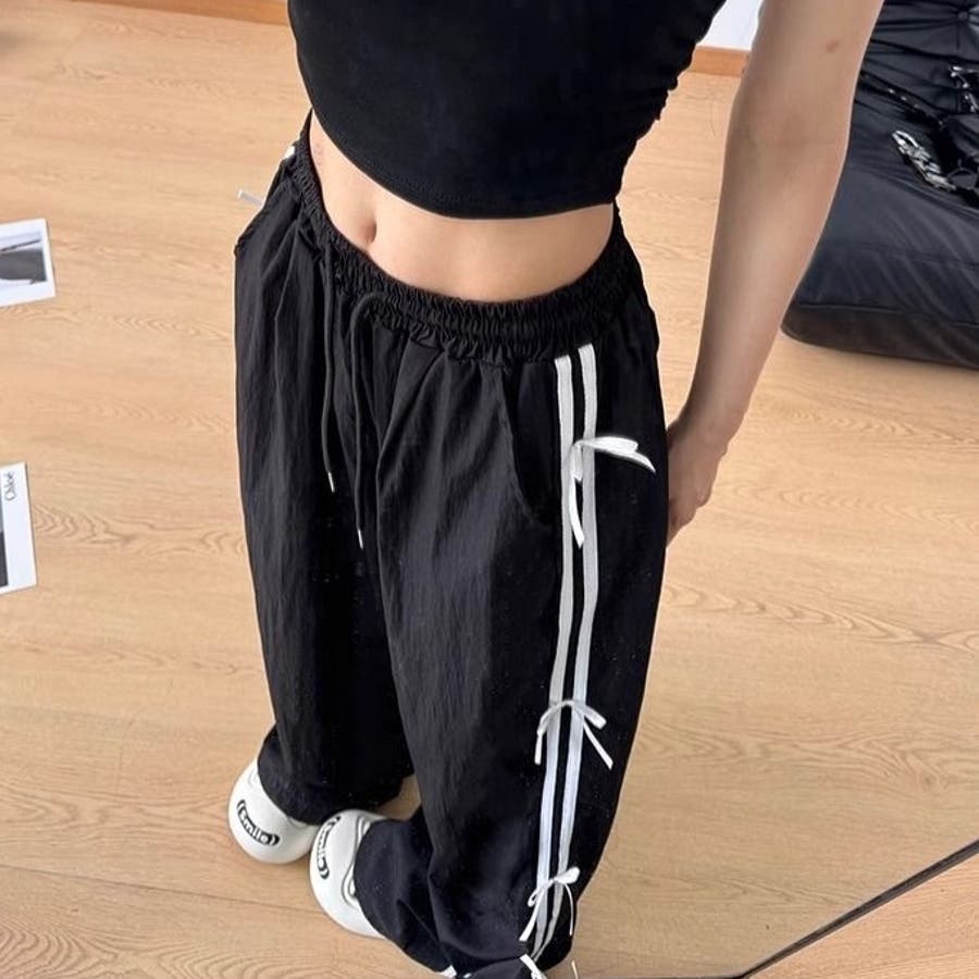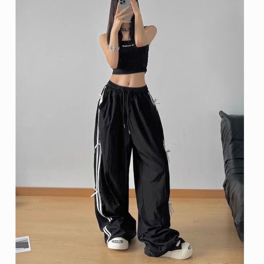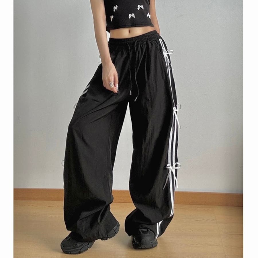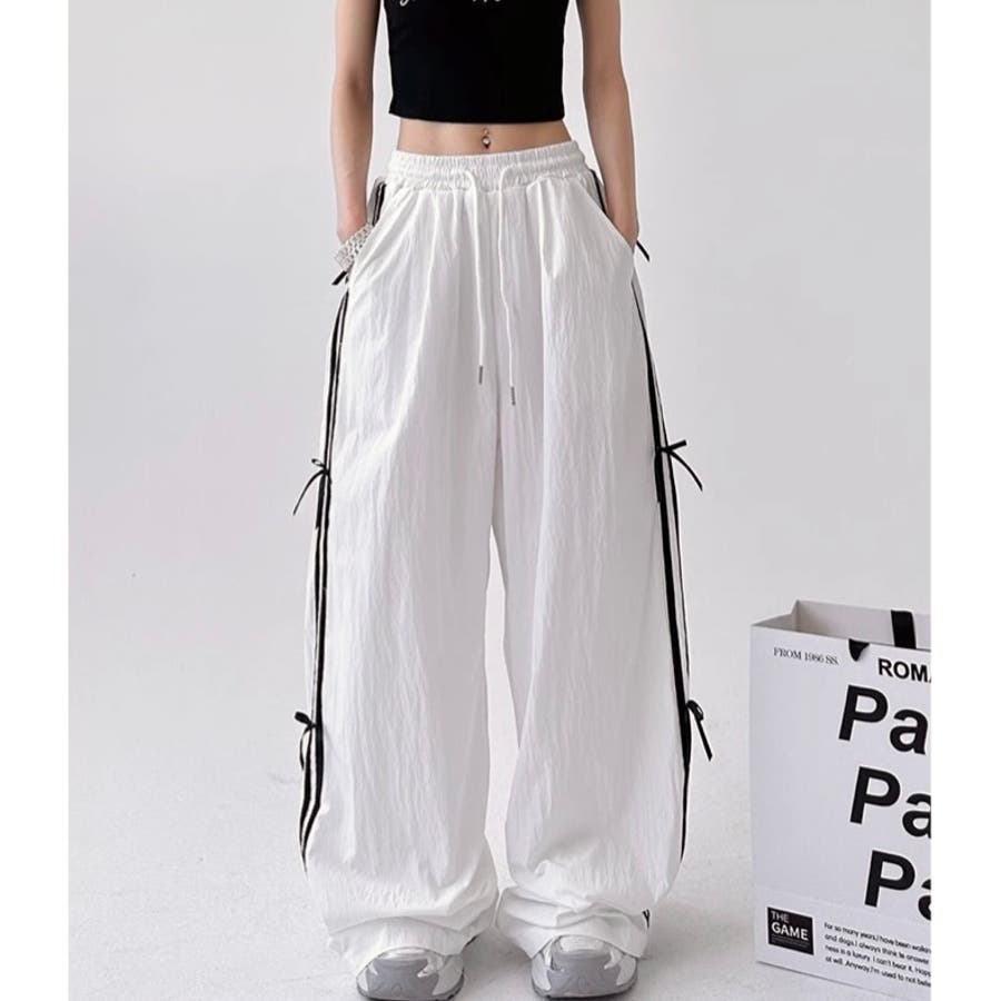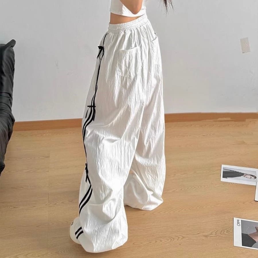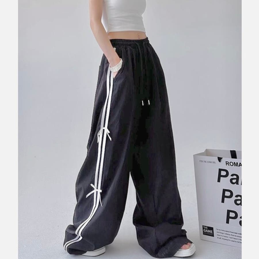 大人 カジュアル きれいめ 韓国ファッション 韓国コーデ Y2K オフィスカジュアル トラックパンツ イージーパンツ ワイドパンツ ウエストゴム ライン入り サイドライン 春服 夏服 秋服 10代 20代 30代 40代 春 夏 秋