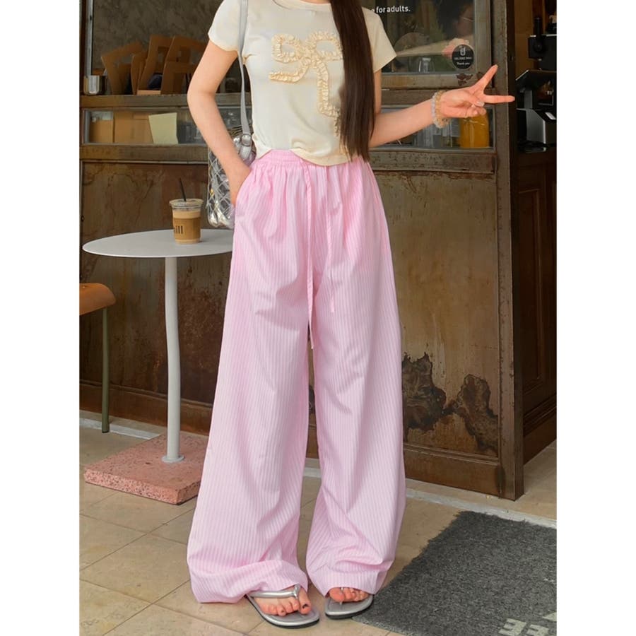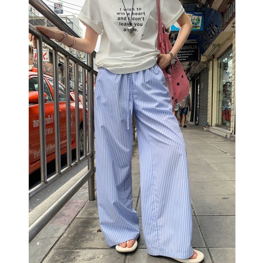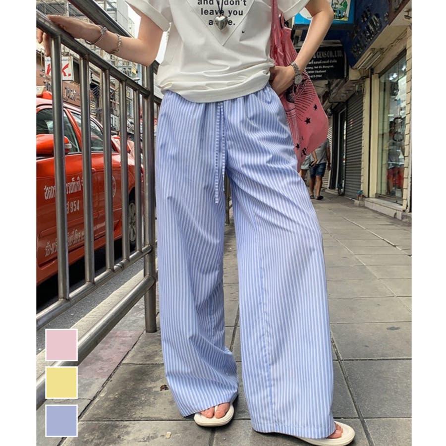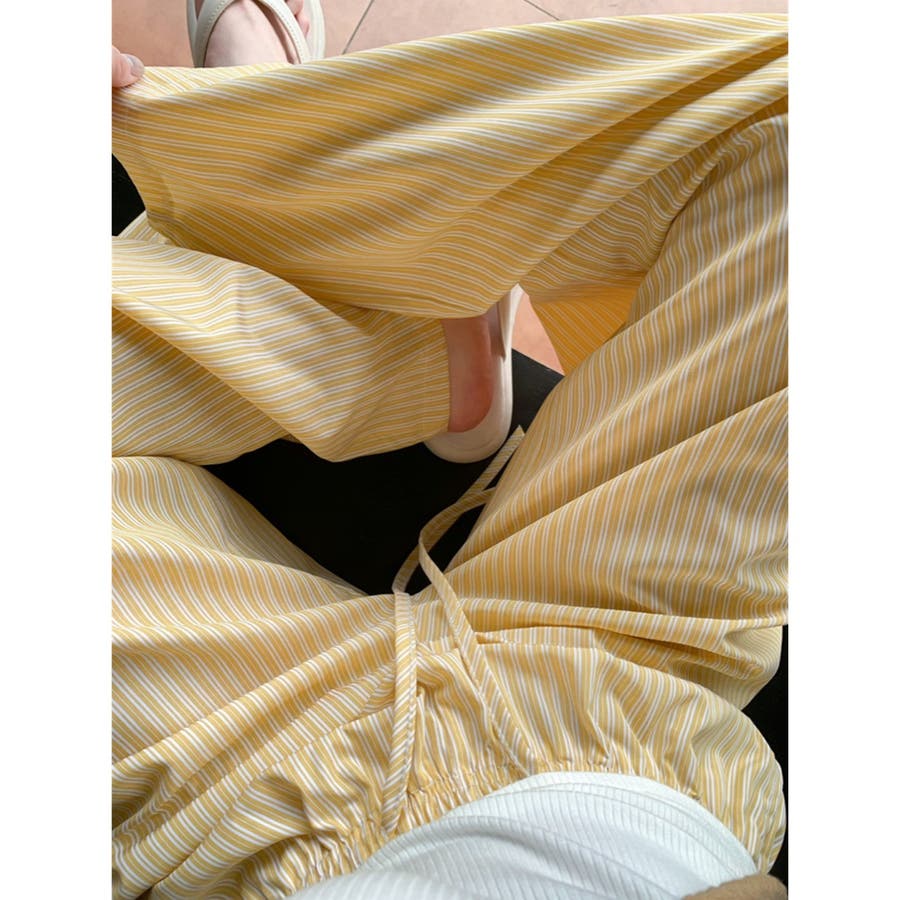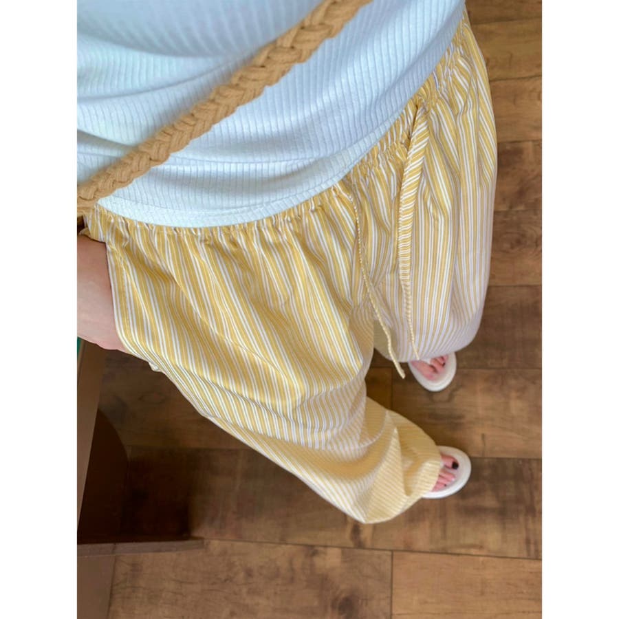【春夏新作】ウエストゴムストライプワイドイージーパンツ