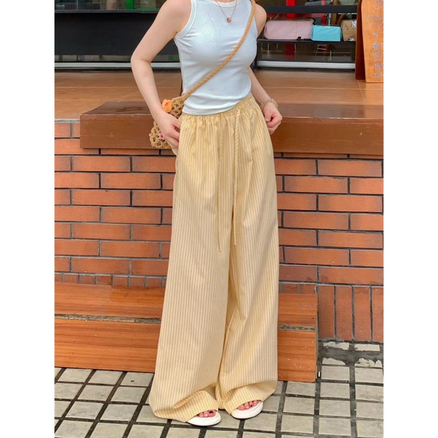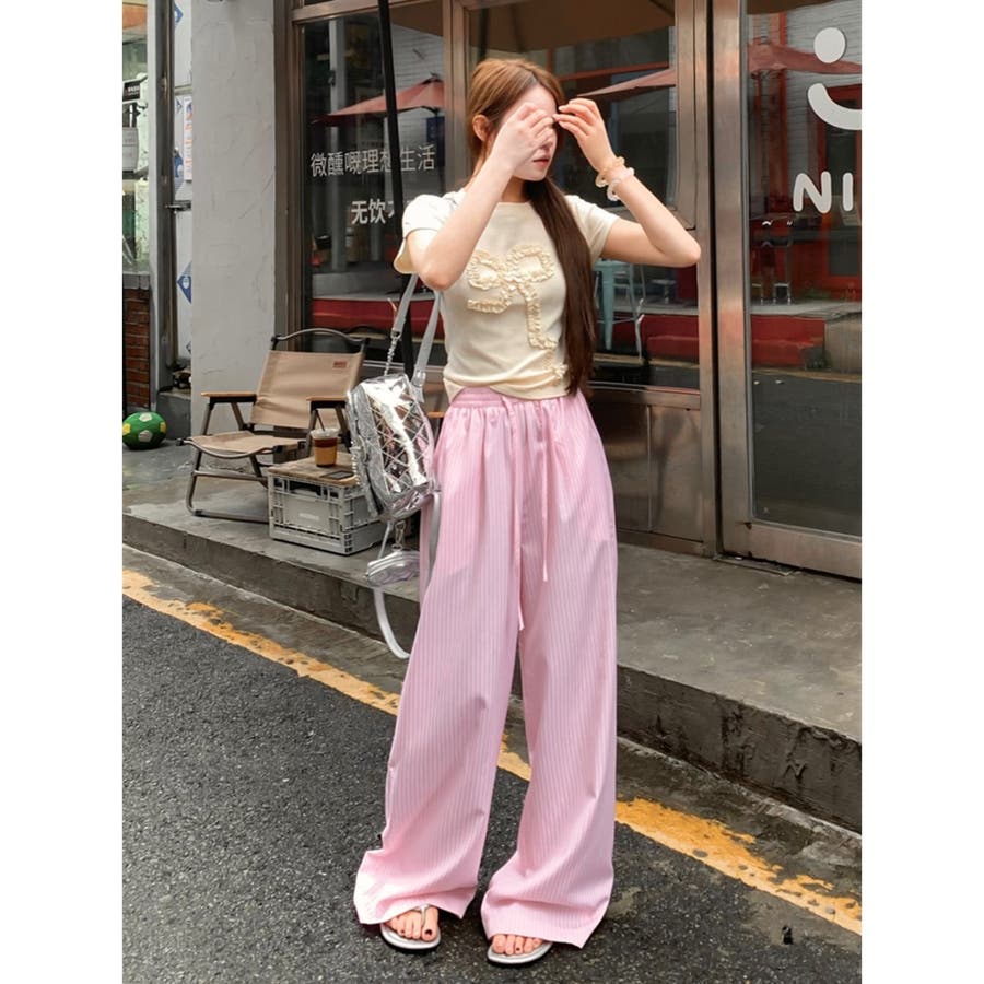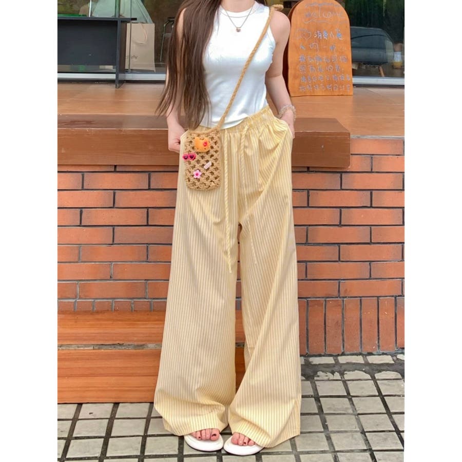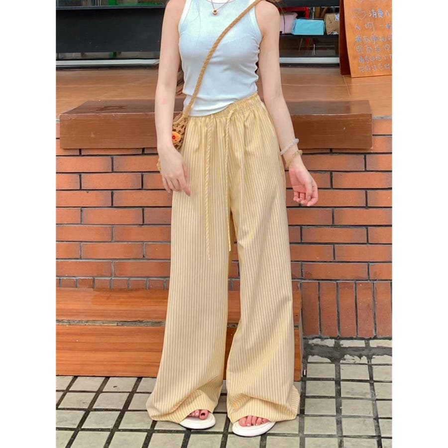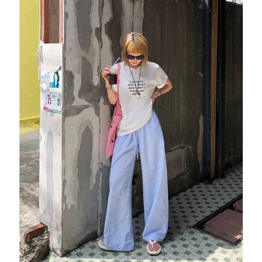 大人 カジュアル きれいめ 韓国ファッション 韓国コーデ Y2K オフィスカジュアル ワイド ゆったり イージーパンツ ハイウエスト ウエストゴム リゾート 春服 夏服 秋服 10代 20代 30代 40代 春 夏 秋