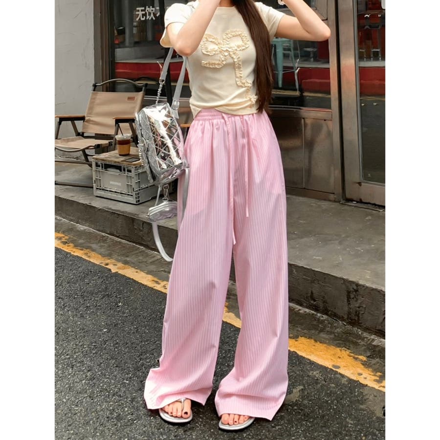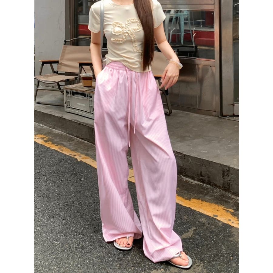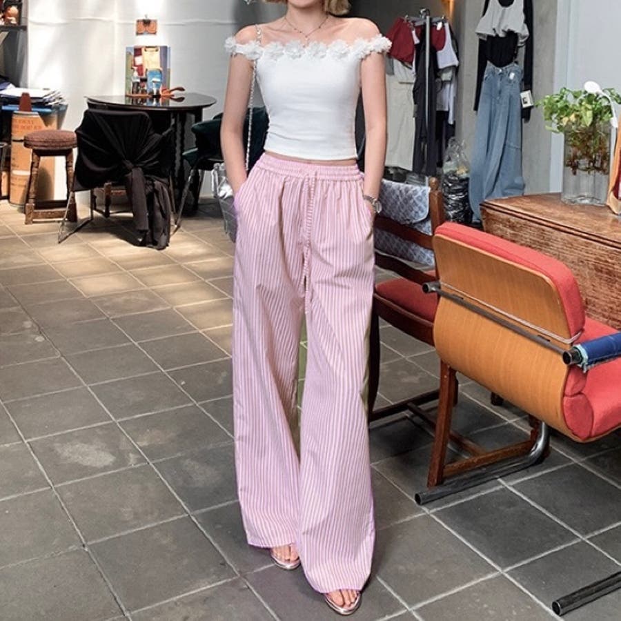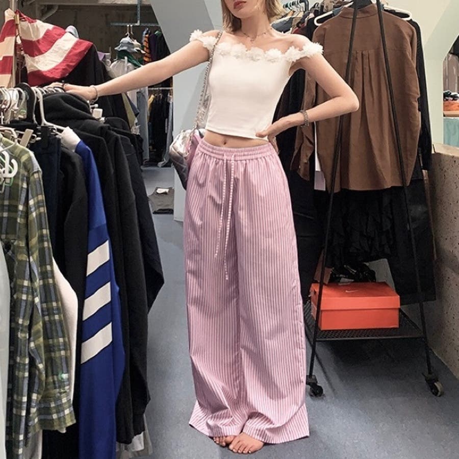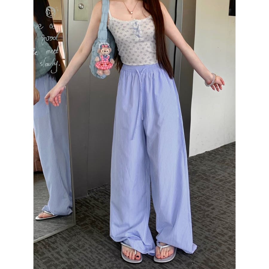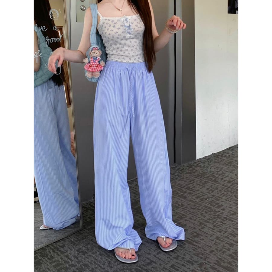 大人 カジュアル きれいめ 韓国ファッション 韓国コーデ Y2K オフィスカジュアル ワイド ゆったり イージーパンツ ハイウエスト ウエストゴム リゾート 春服 夏服 秋服 10代 20代 30代 40代 春 夏 秋