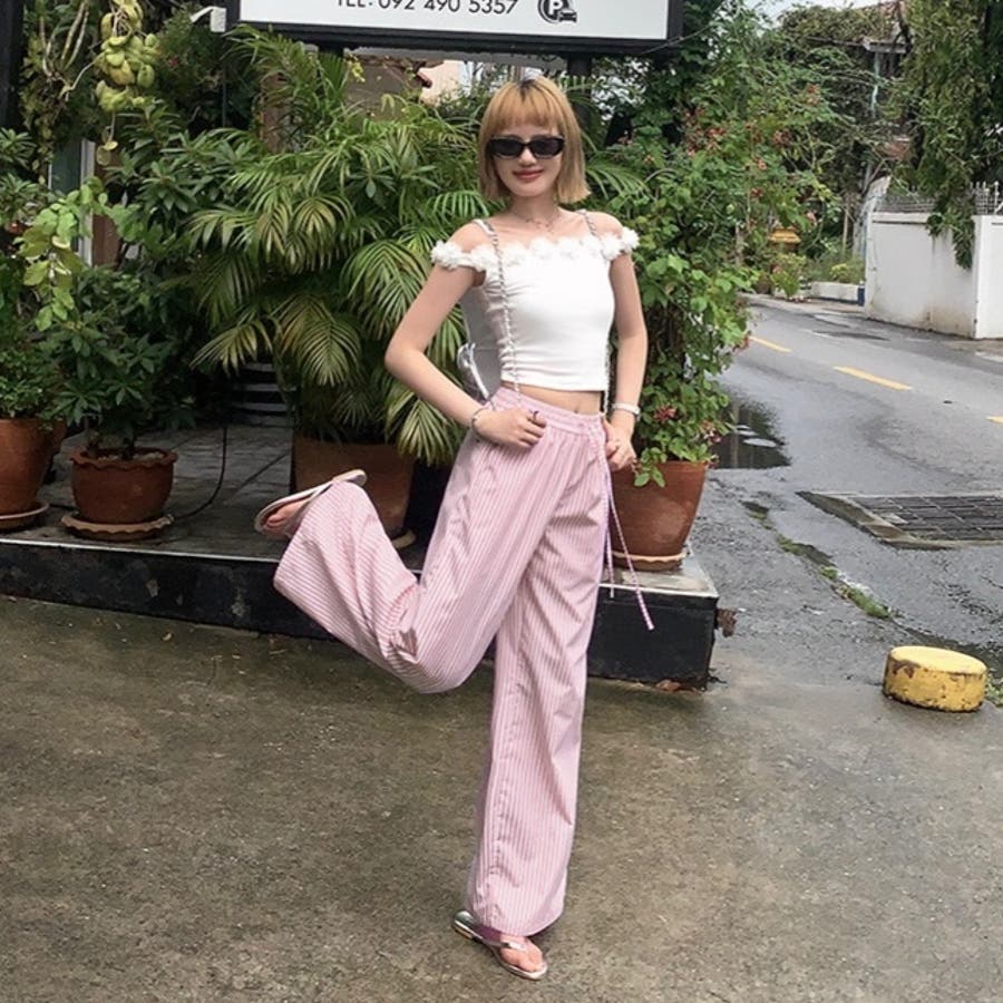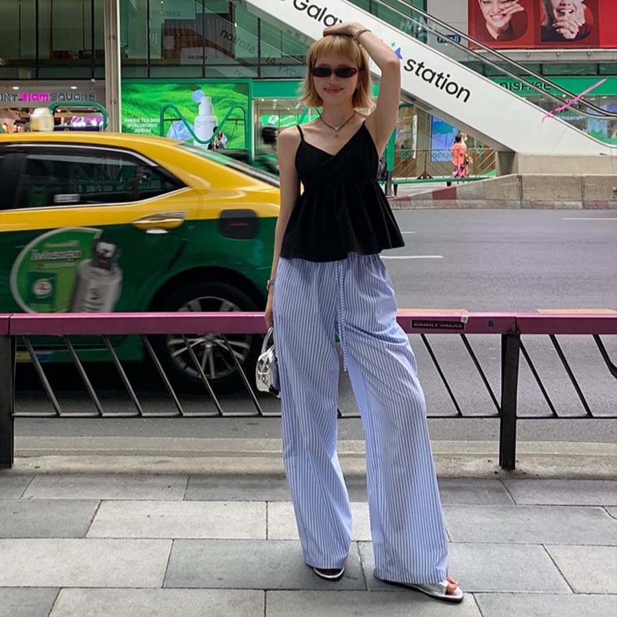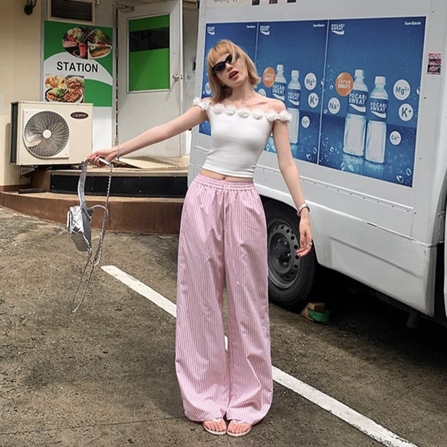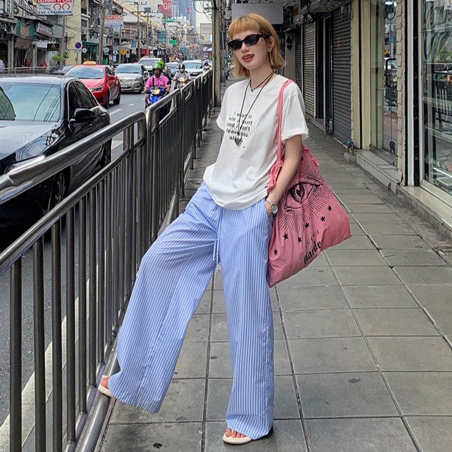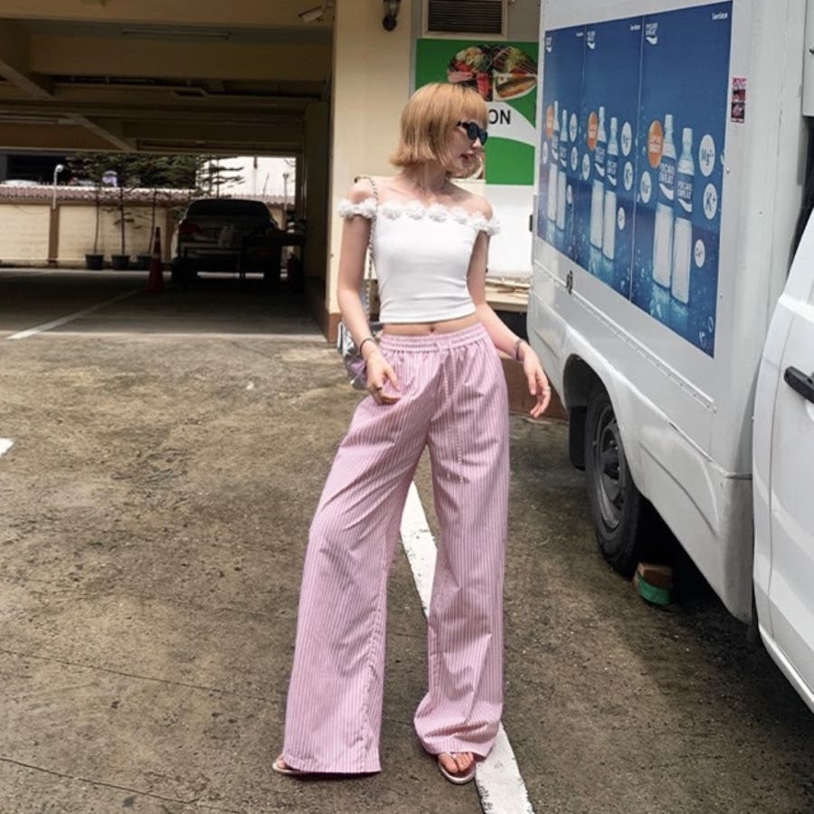 大人 カジュアル きれいめ 韓国ファッション 韓国コーデ Y2K オフィスカジュアル ワイド ゆったり イージーパンツ ハイウエスト ウエストゴム リゾート 春服 夏服 秋服 10代 20代 30代 40代 春 夏 秋