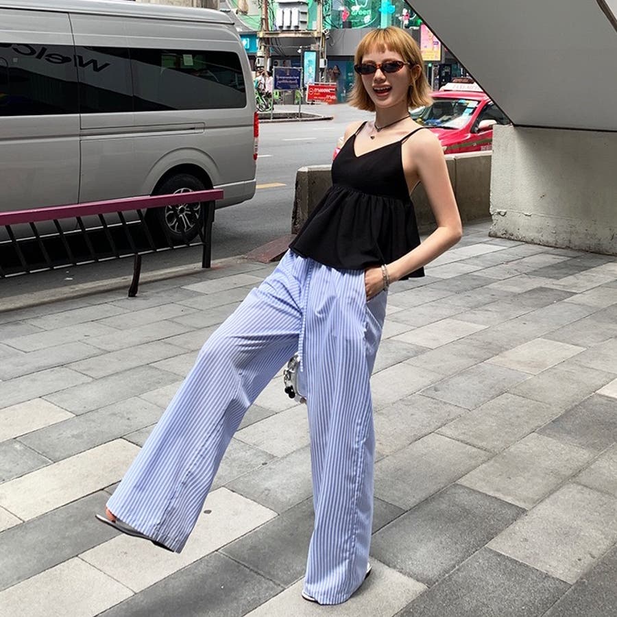 ゆるっとしたシルエットが魅力のストライプワイドパンツが登場。