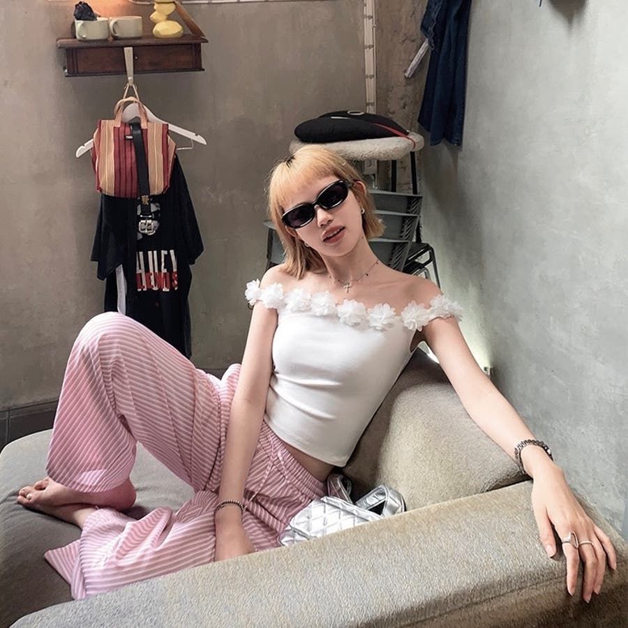 シンプルなタンクトップと合わせるだけで、抜け感のあるカジュアルスタイルが完成します。