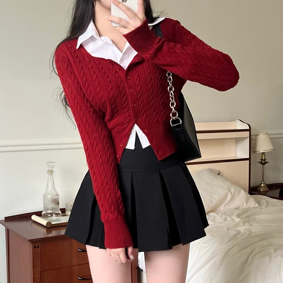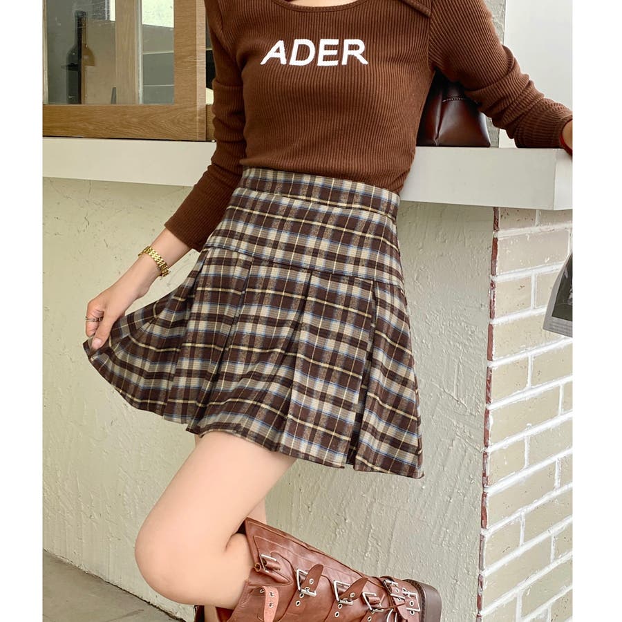 太めのプリーツスカートは甘くなりすぎず、大人っぽい雰囲気なのでコーデをアレンジしやすいのも◎