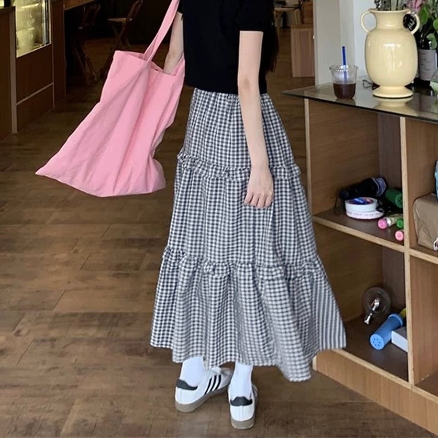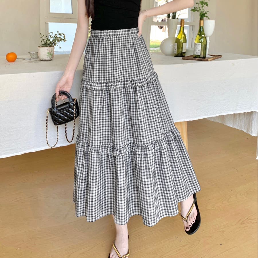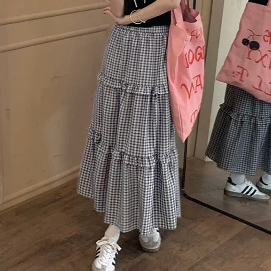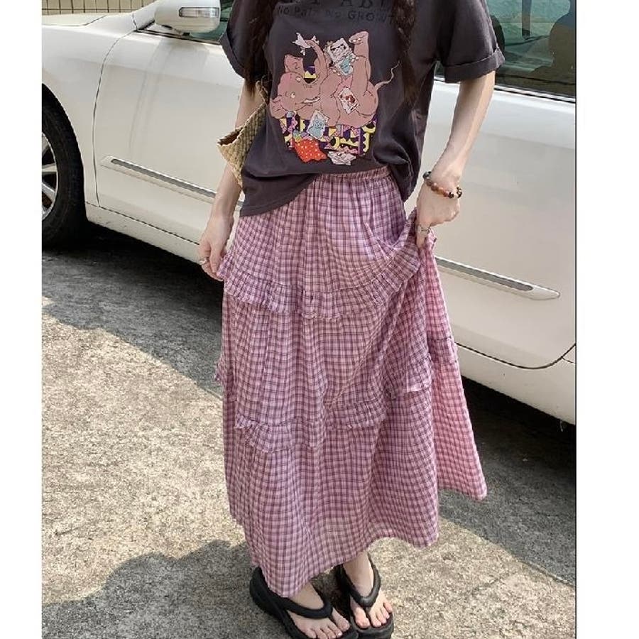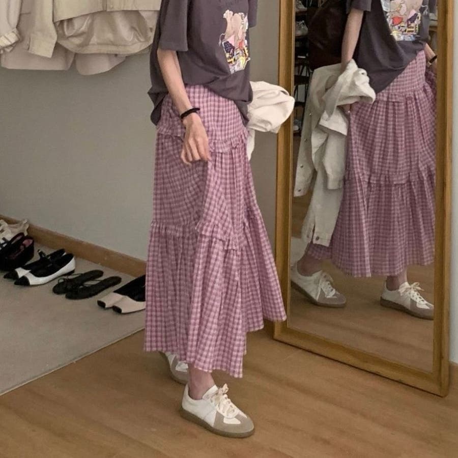 大人 カジュアル きれいめ 韓国ファッション 韓国コーデ ロング丈 チェック柄 ふんわり Y2K オフィスカジュアル 春服 夏服 秋服 10代 20代 30代 40代 春 夏 秋