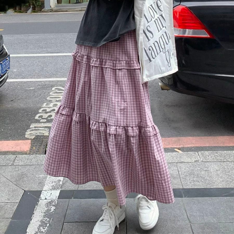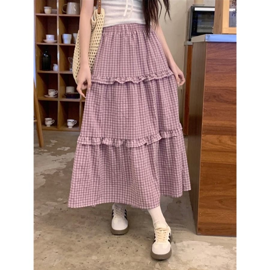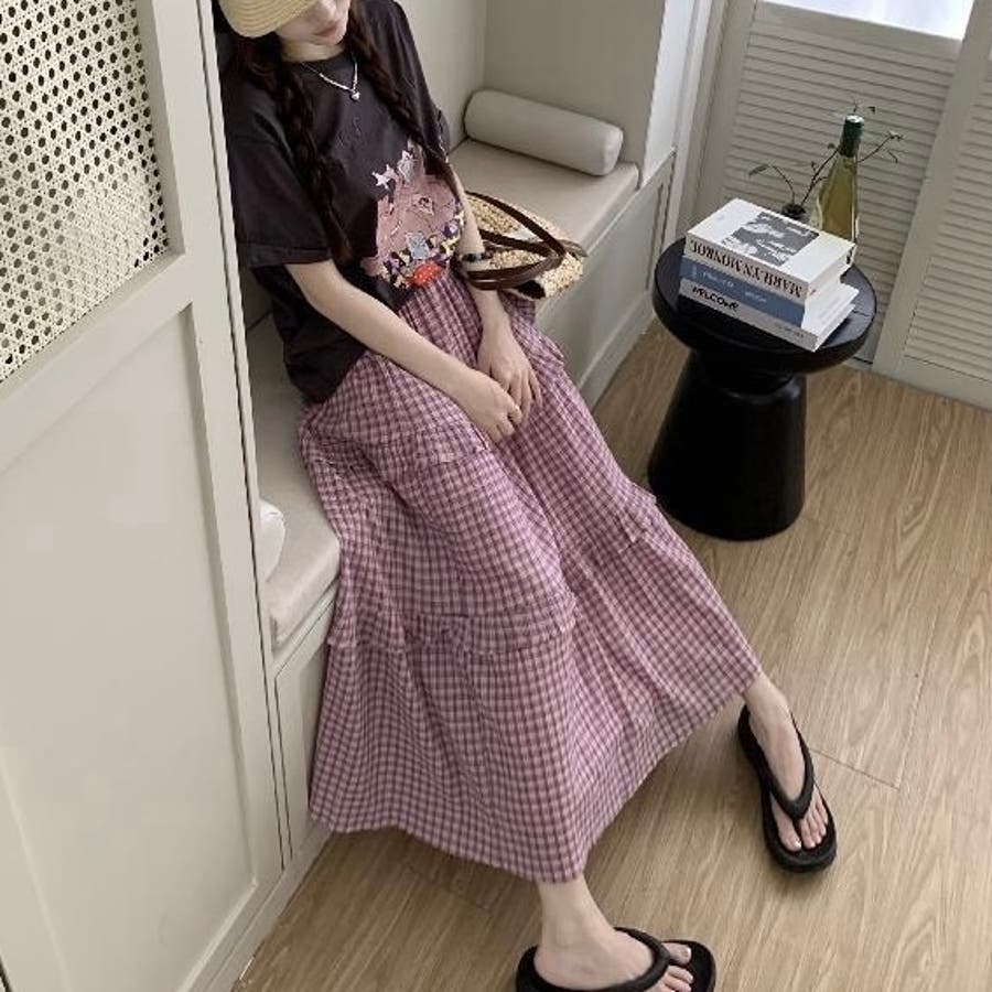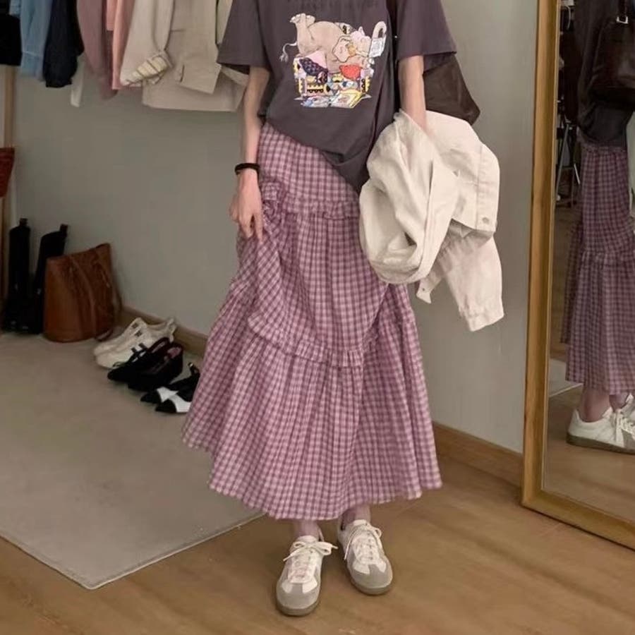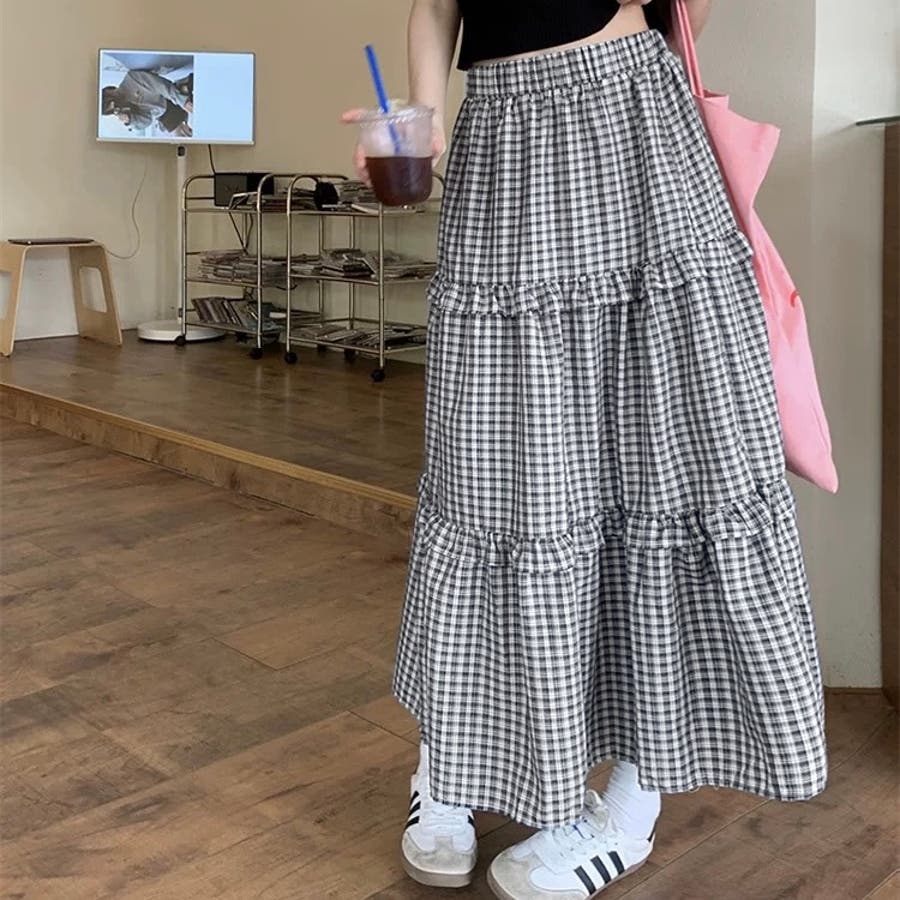 大人 カジュアル きれいめ 韓国ファッション 韓国コーデ ロング丈 チェック柄 ふんわり Y2K オフィスカジュアル 春服 夏服 秋服 10代 20代 30代 40代 春 夏 秋
