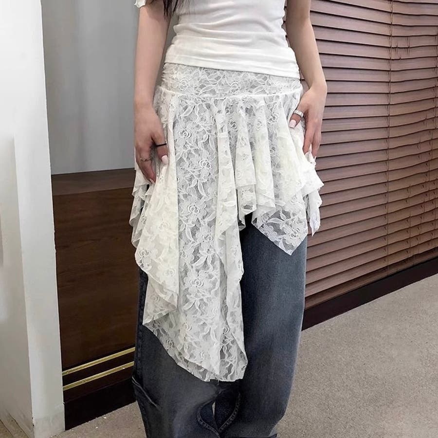 レース素材が美しいこちらのアシンメトリースカートは、軽やかなシルエットが魅力的な1枚♪