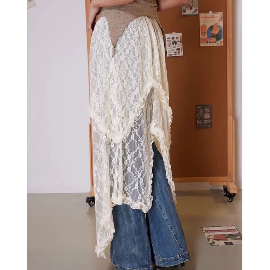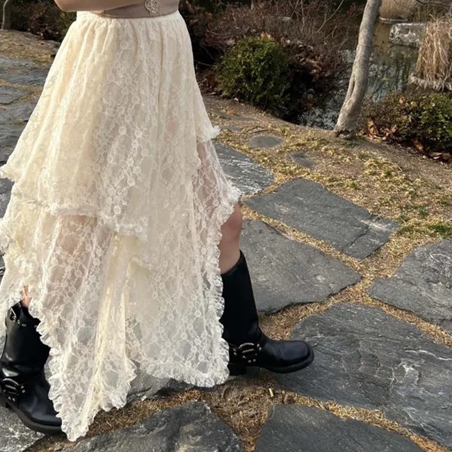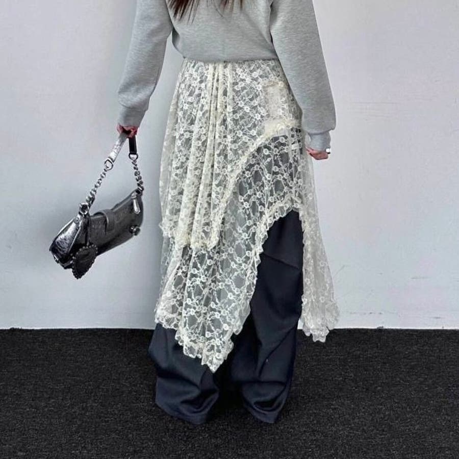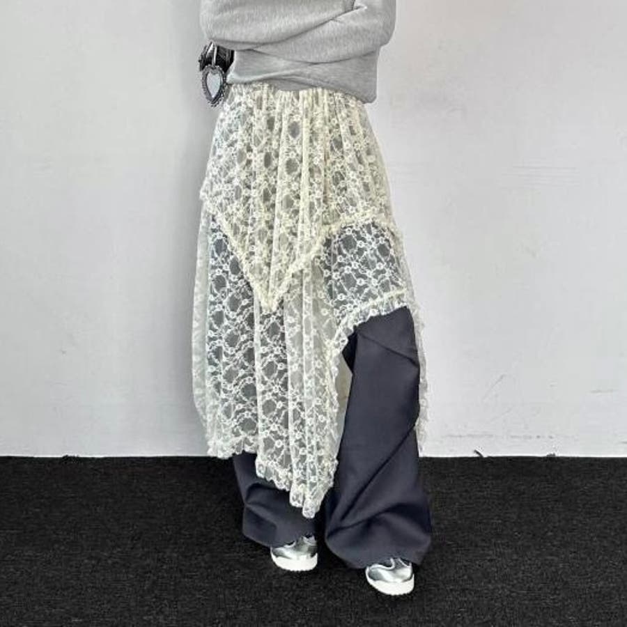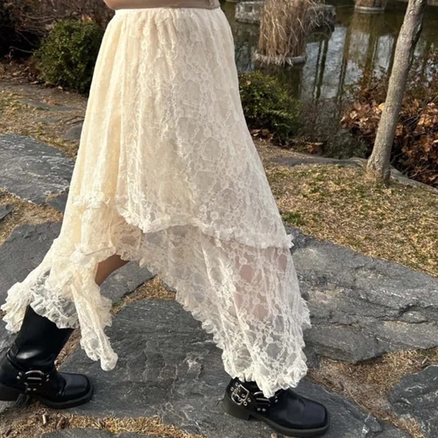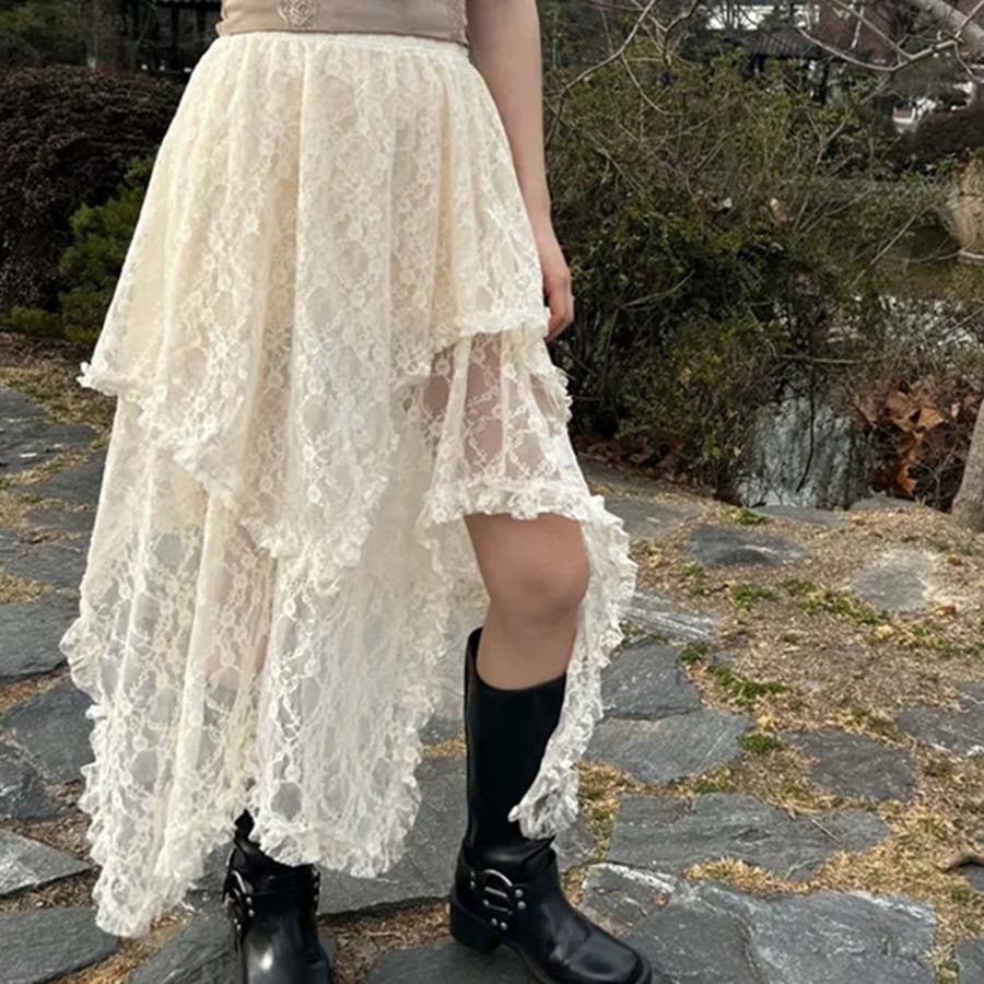 【春夏新作】ランダムヘムレースレイヤードスカート