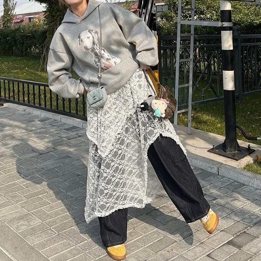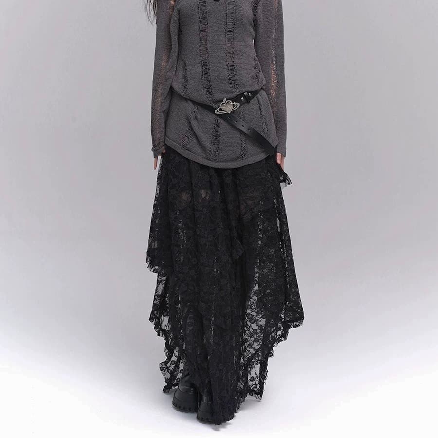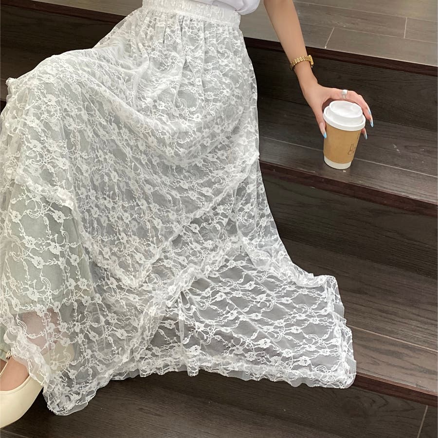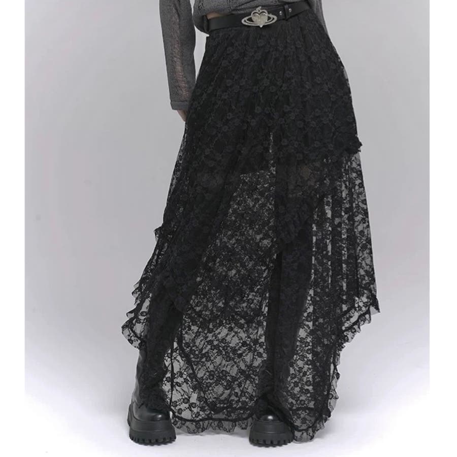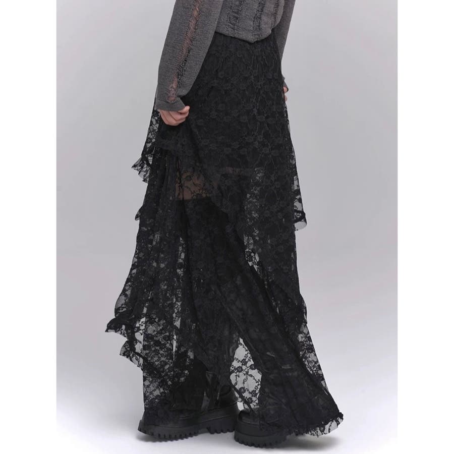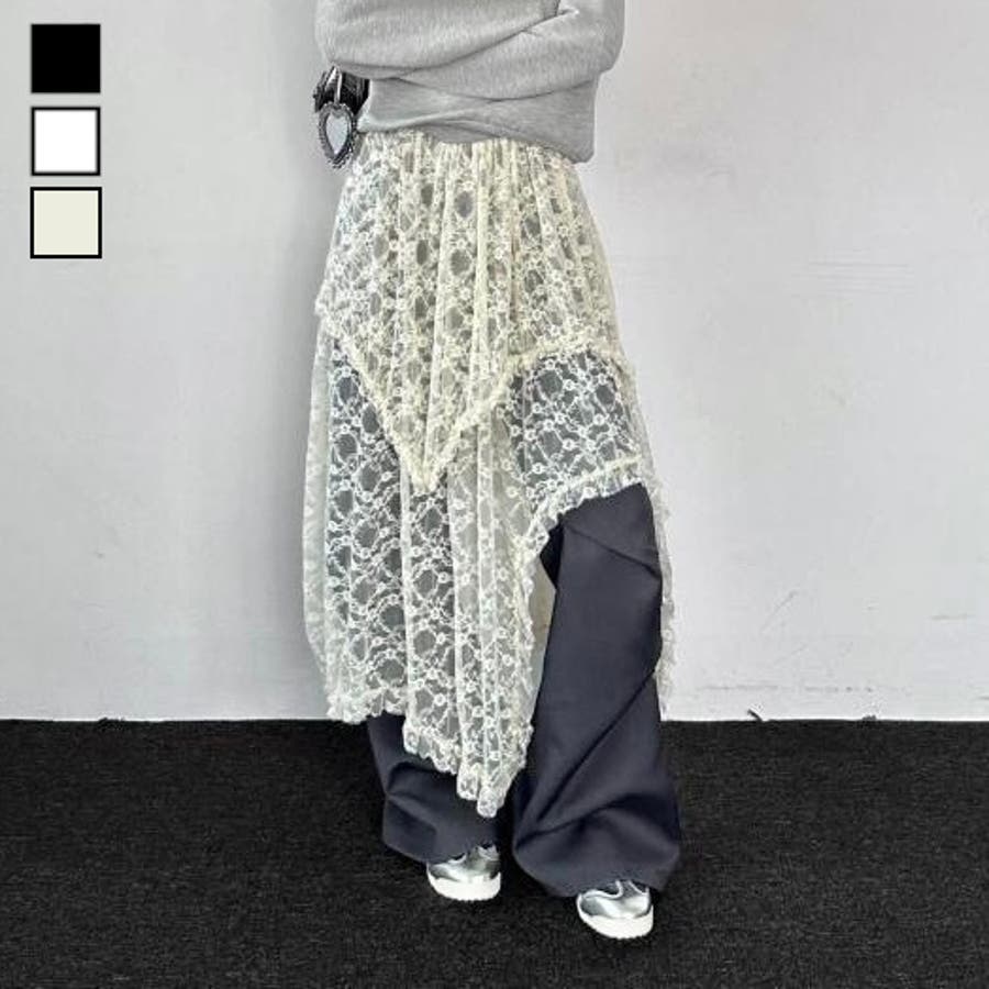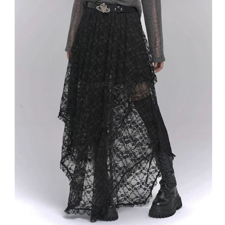 【春夏新作】ランダムヘムレースレイヤードスカート