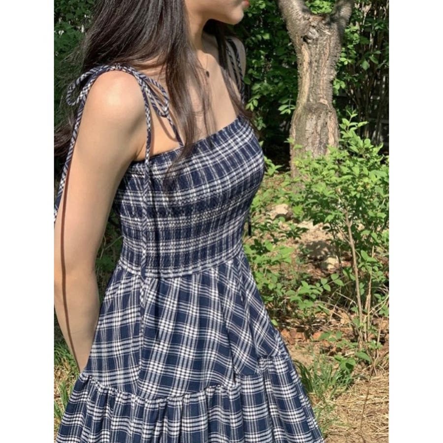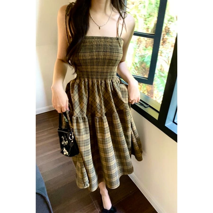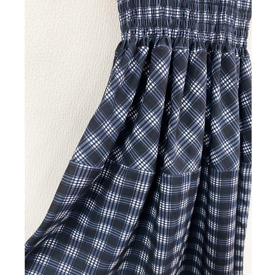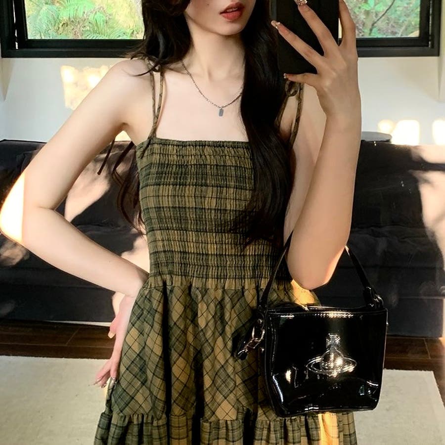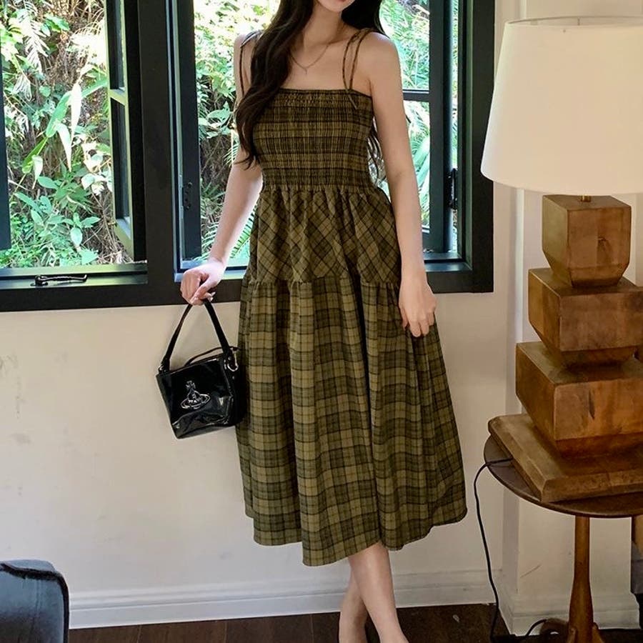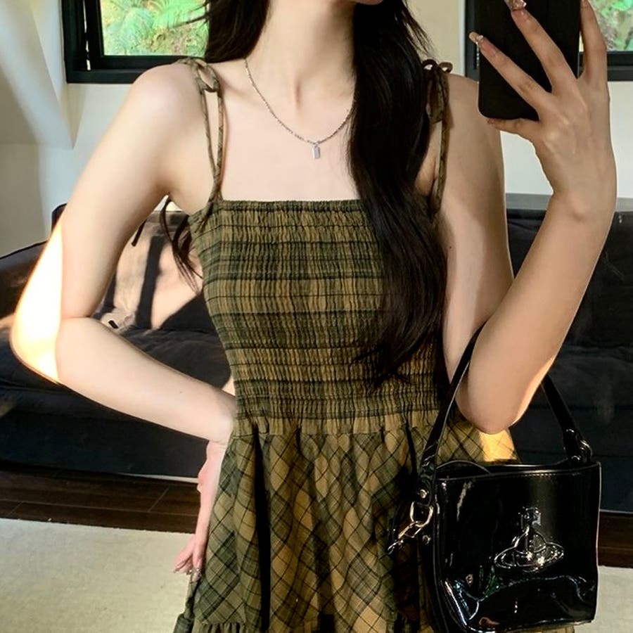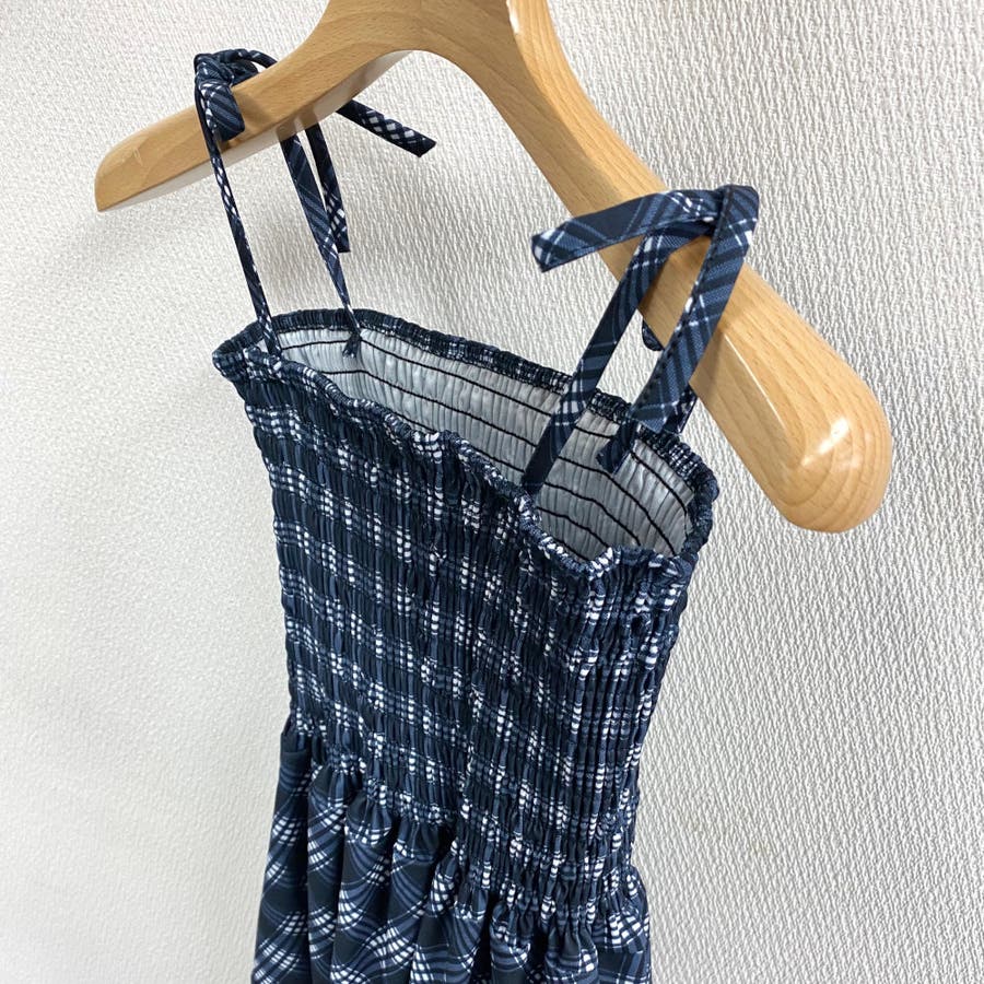 チェック柄シャーリングキャミワンピース
