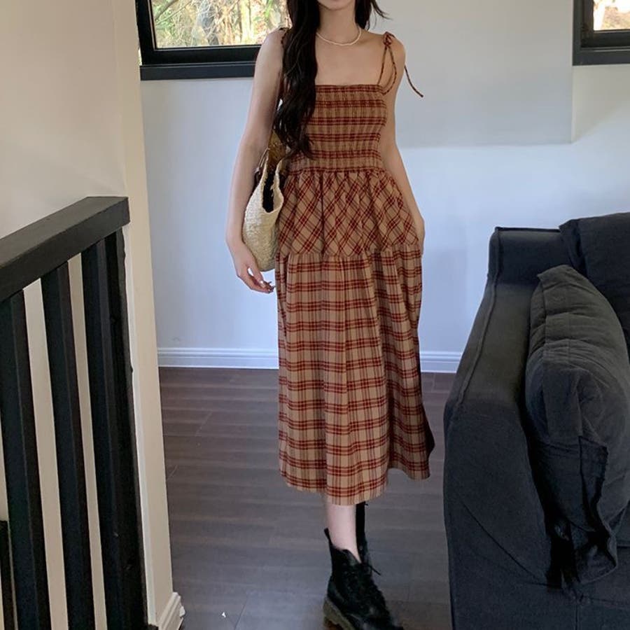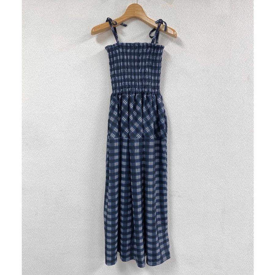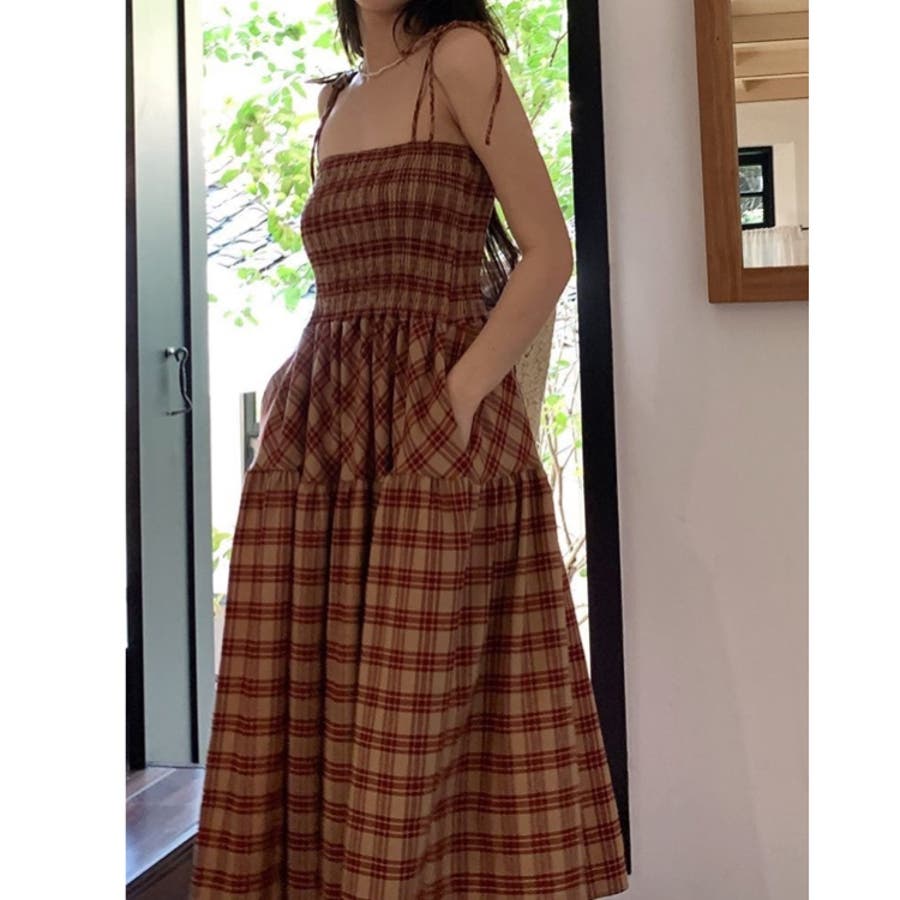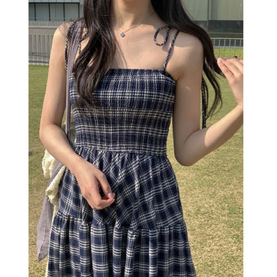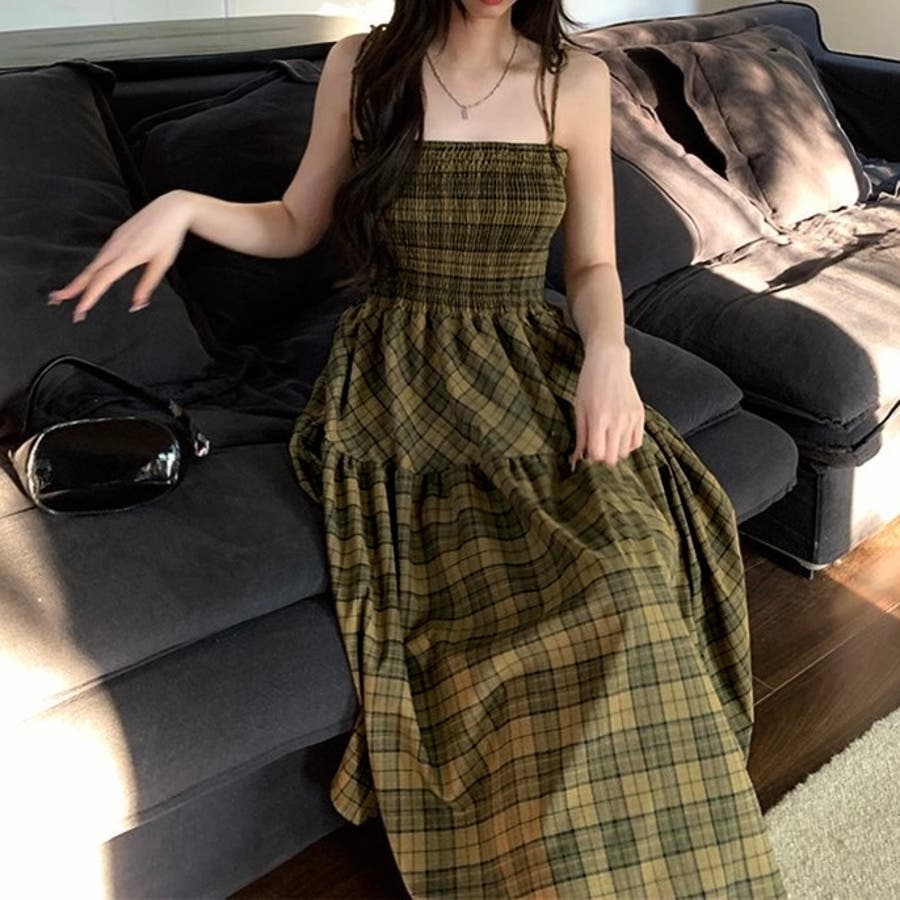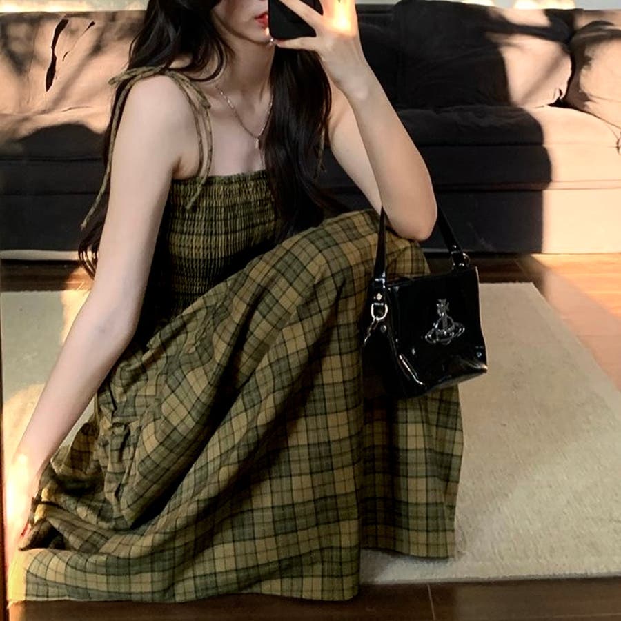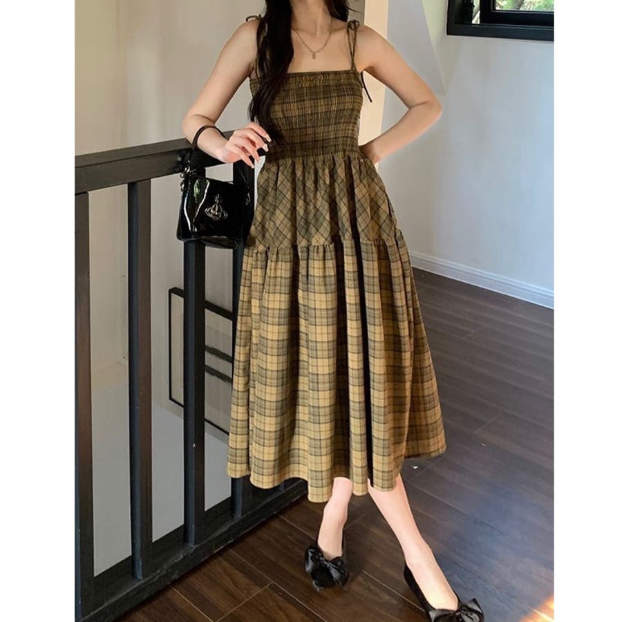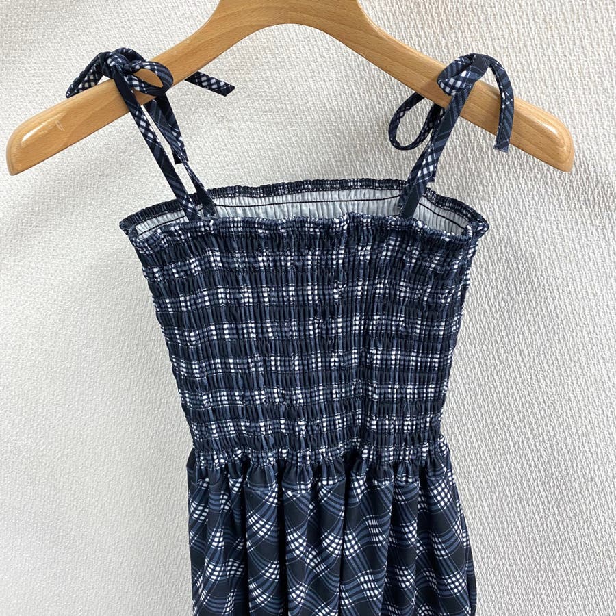 チェック柄シャーリングキャミワンピース