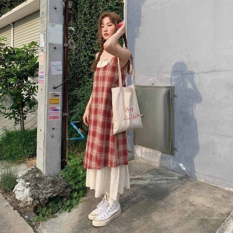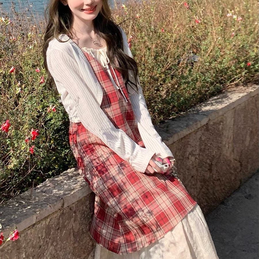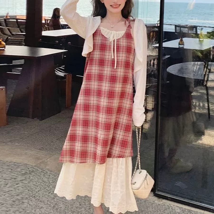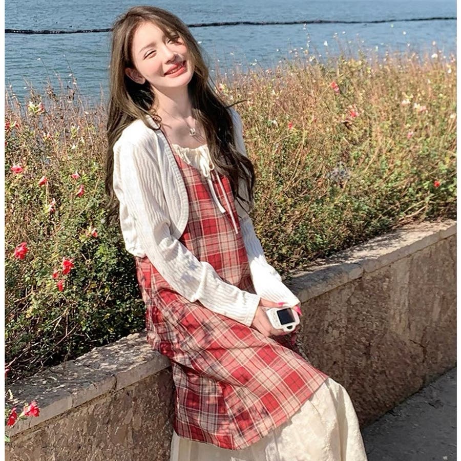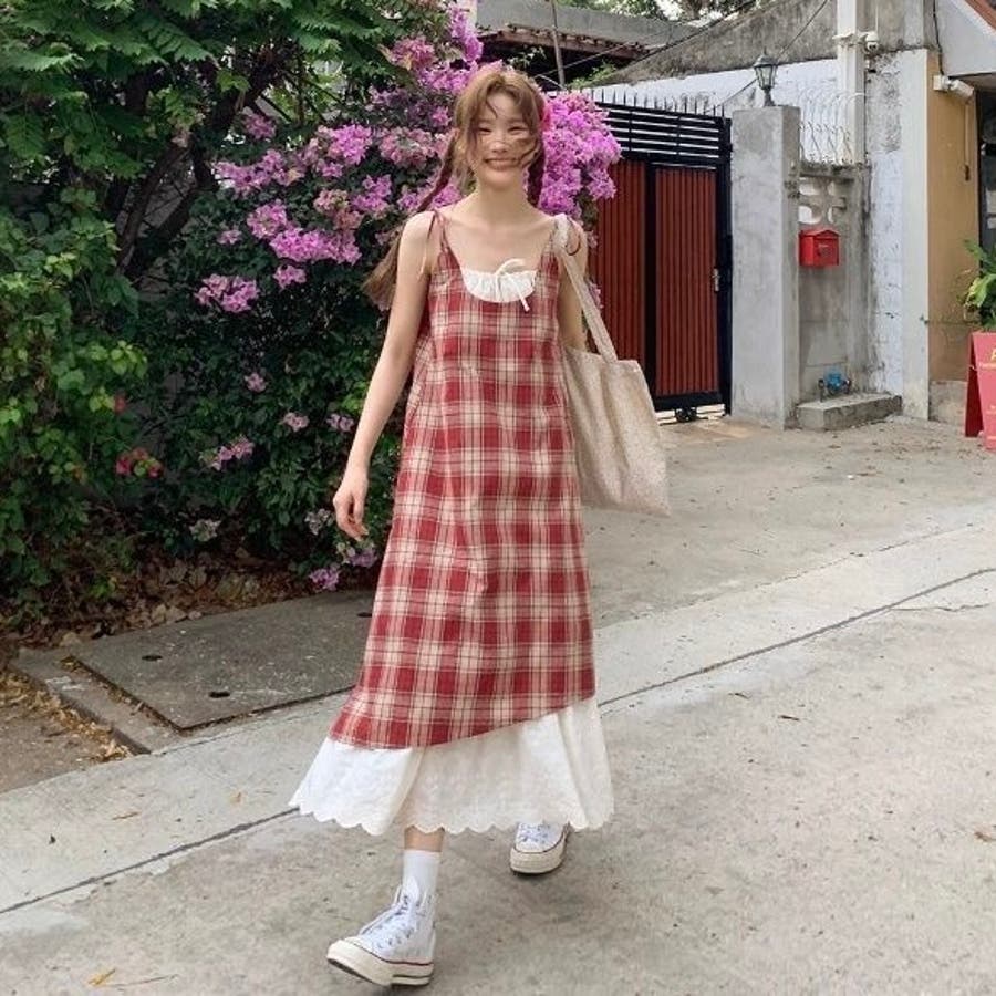 レトロ感のあるチェック柄と、裾からのぞくレースインナーが絶妙なレイヤード感を演出し、着るだけでスタイルが完成します。