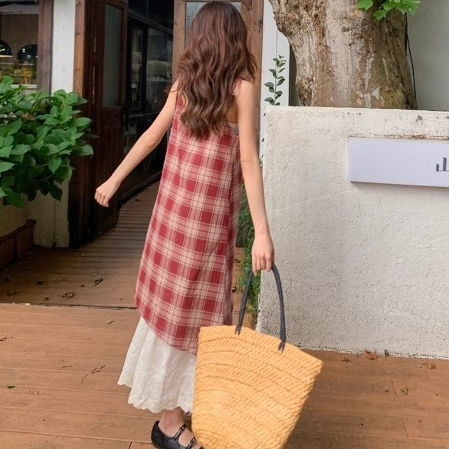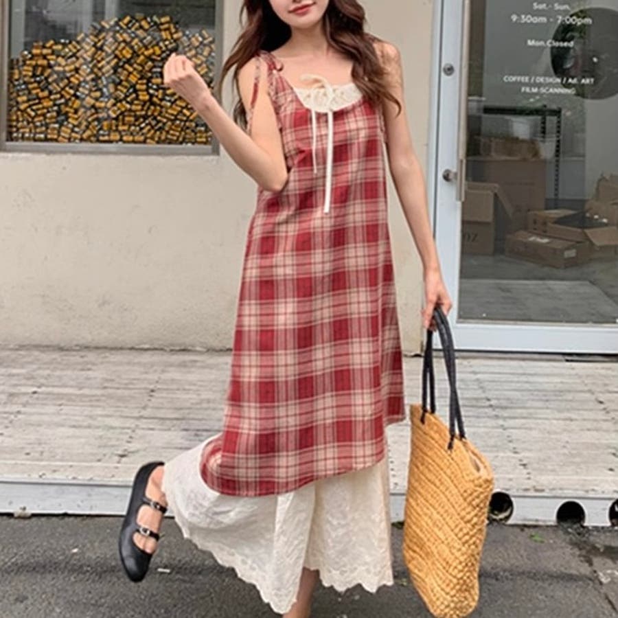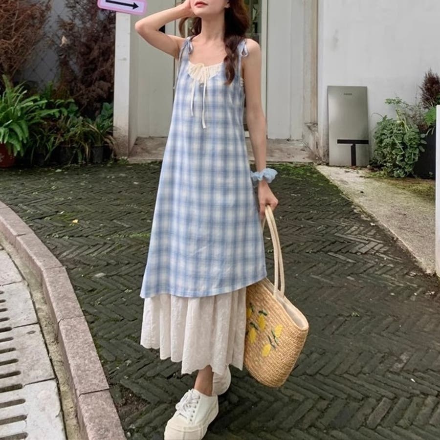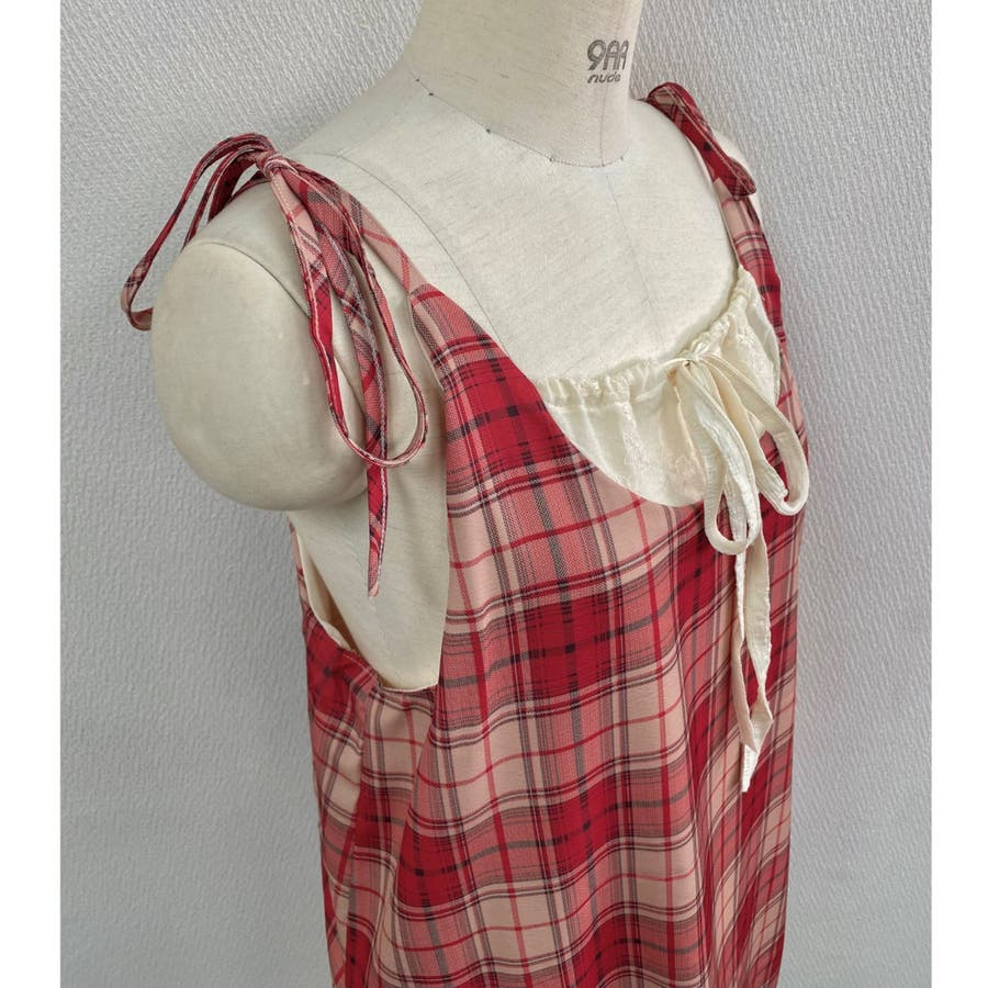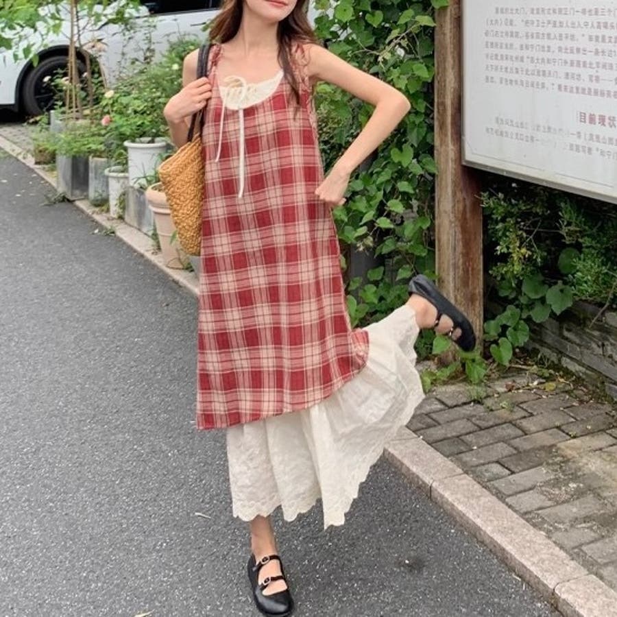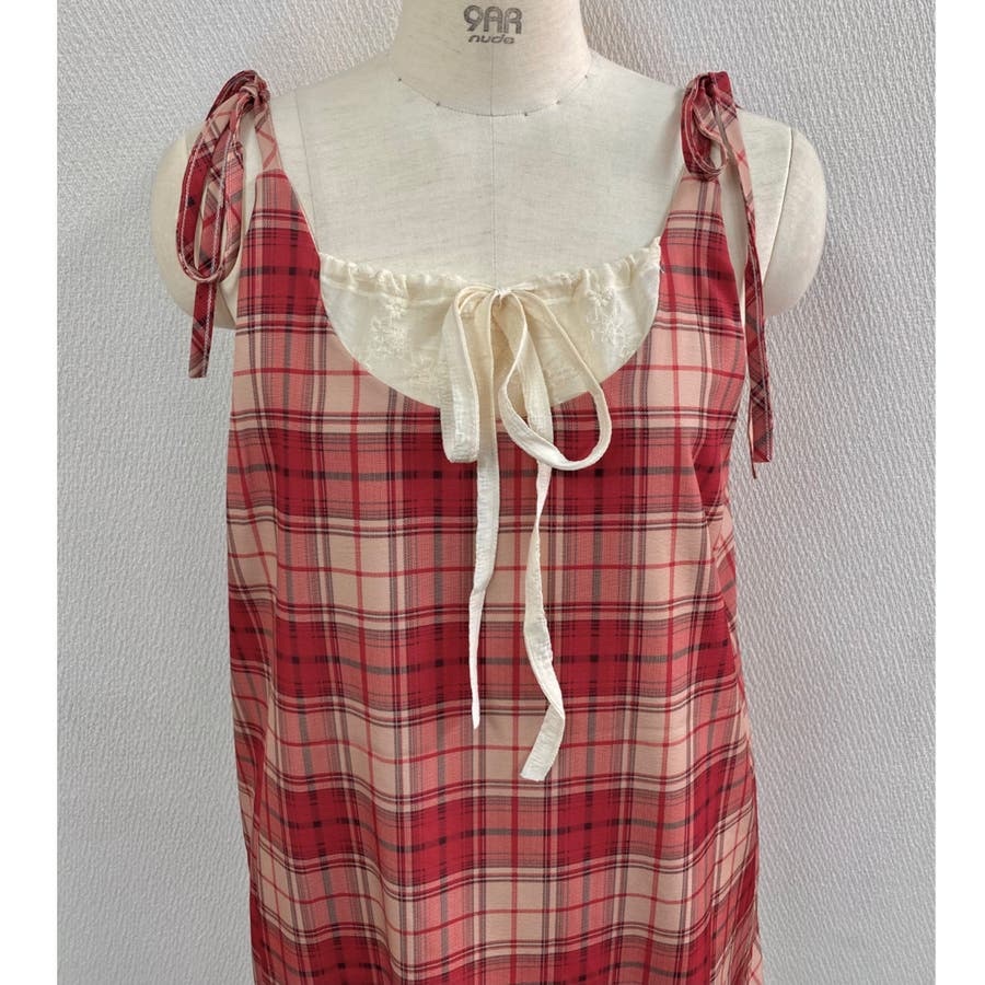 【春夏新作】レイヤード風チェック柄キャミワンピース