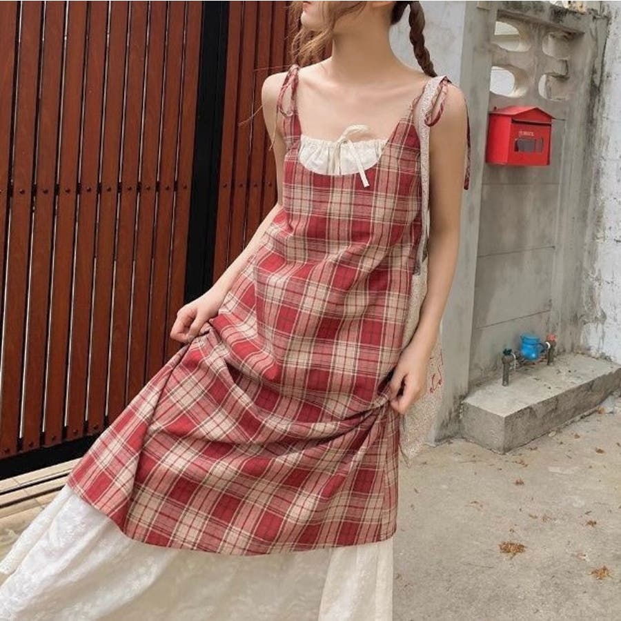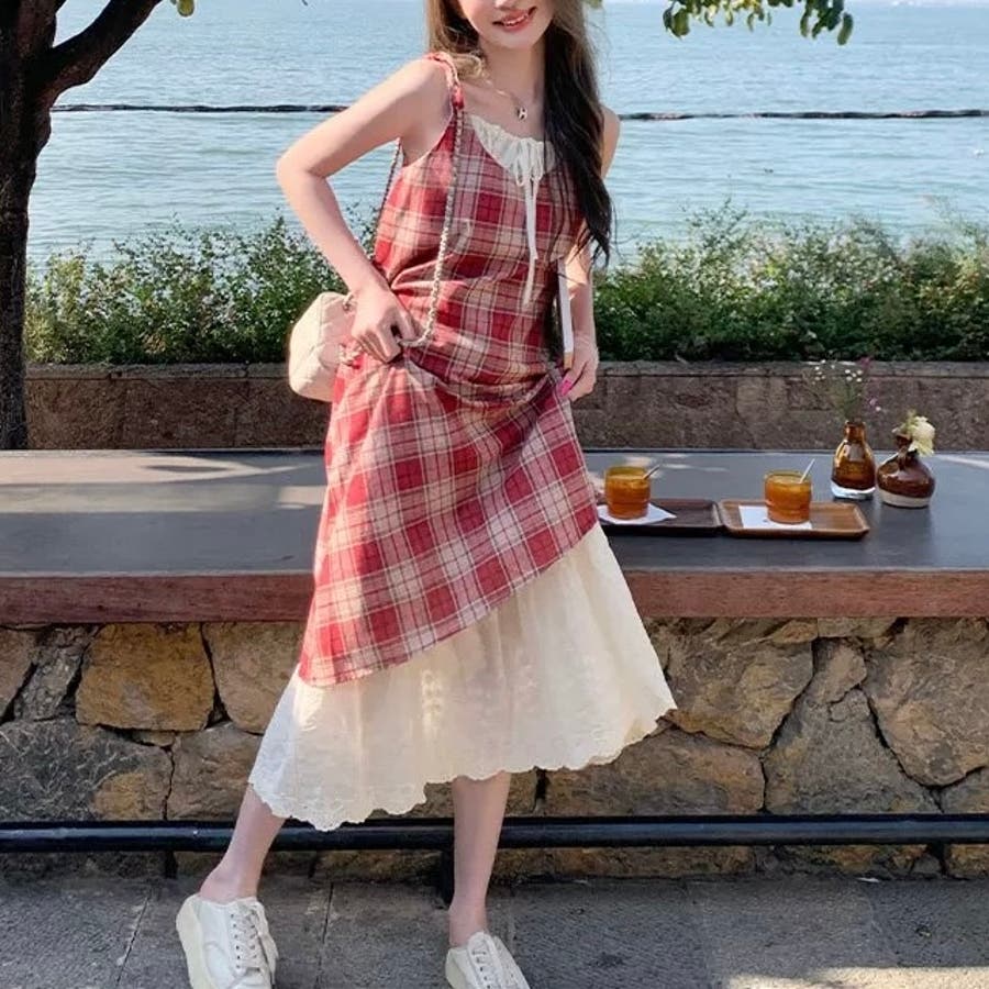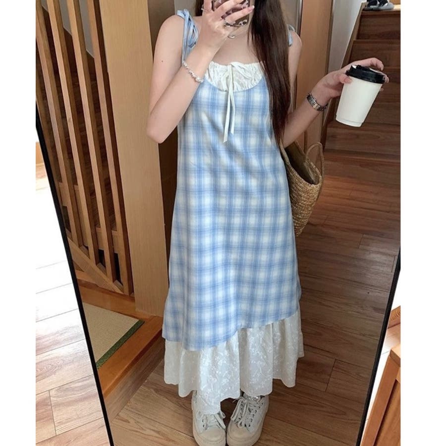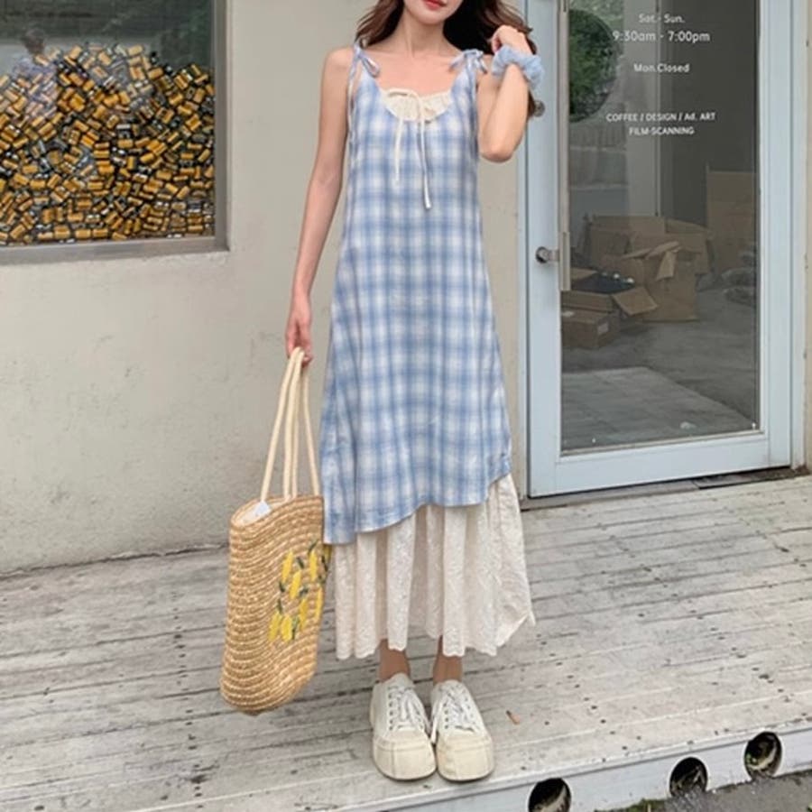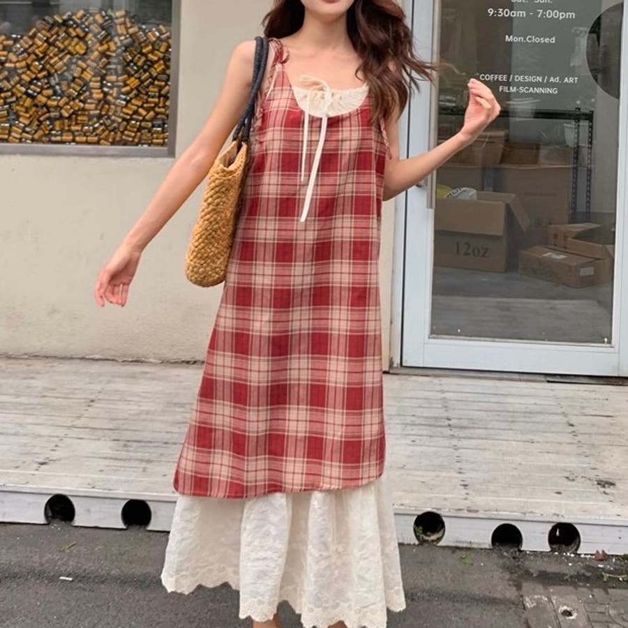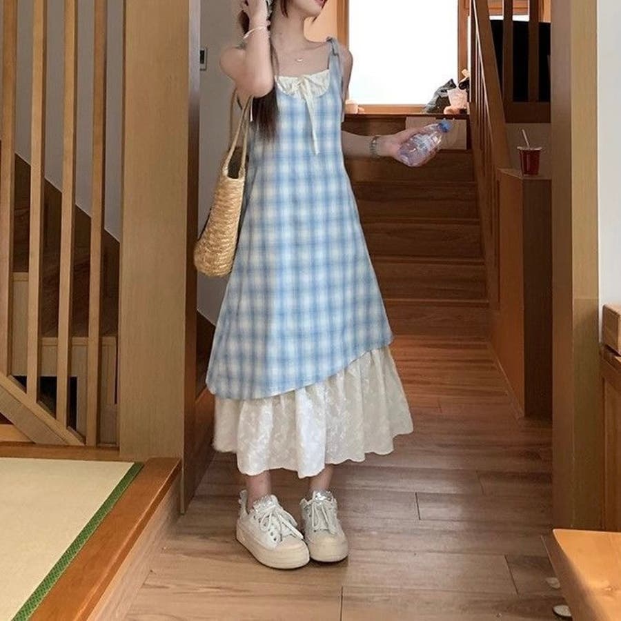 【春夏新作】レイヤード風チェック柄キャミワンピース