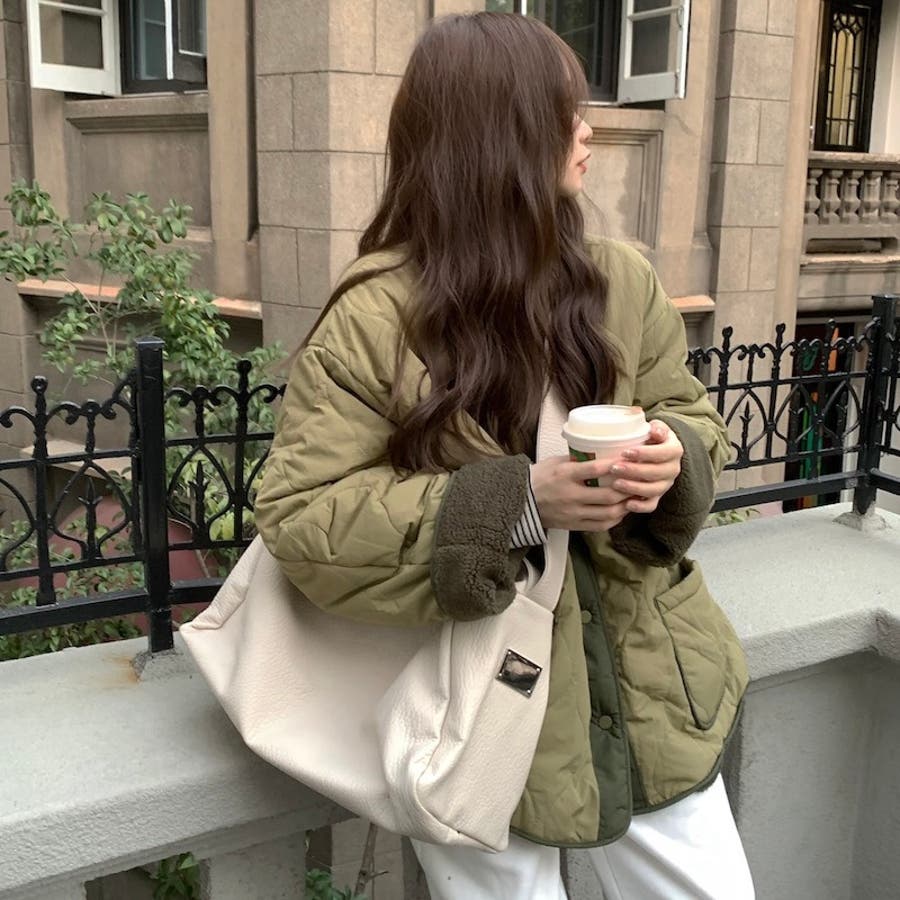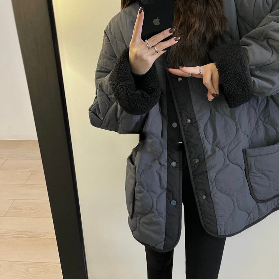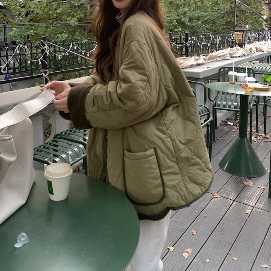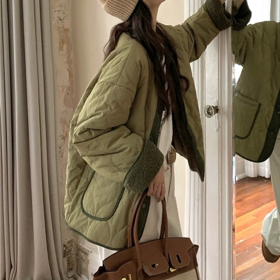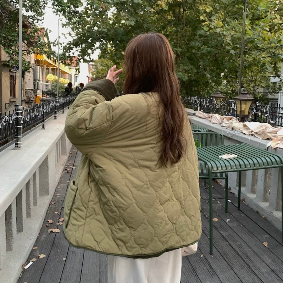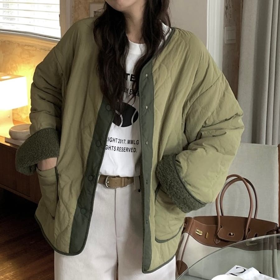 大人 カジュアル きれいめ 韓国ファッション 韓国コーデ オフィスカジュアル ゆったり 防寒 アウター ブルゾン ジャケット はおり 衿なし ノーカラー ハーフコート キルティングジャケット 秋服 冬服 20代 30代 40代 春 秋 冬