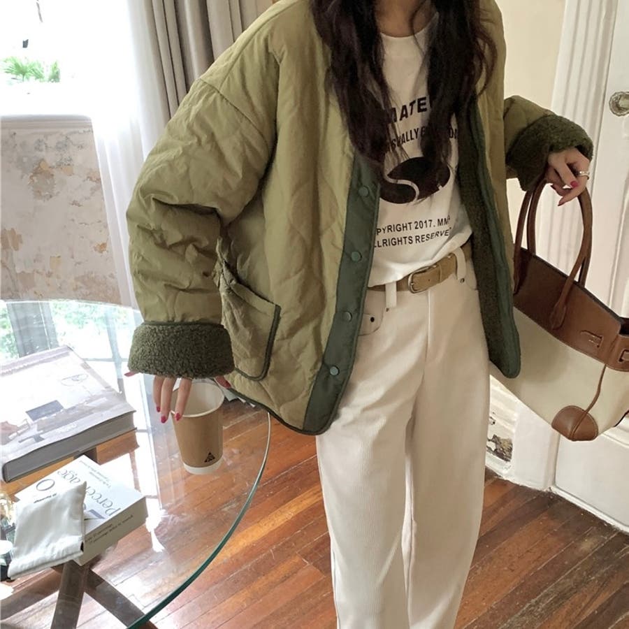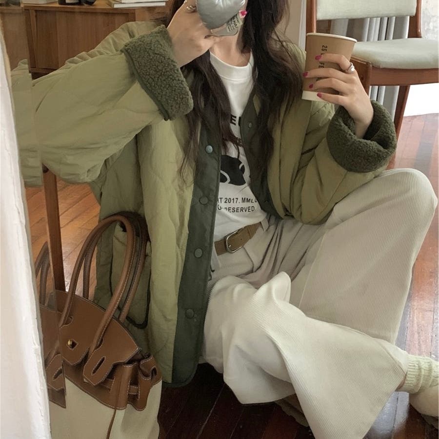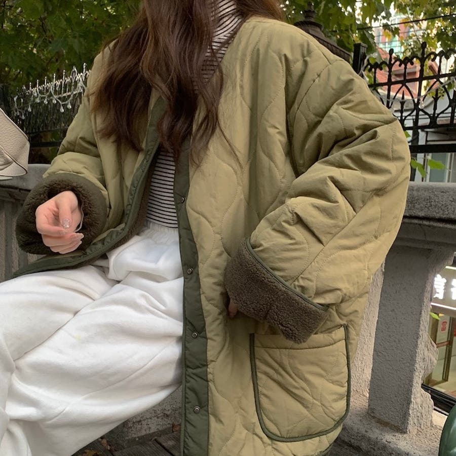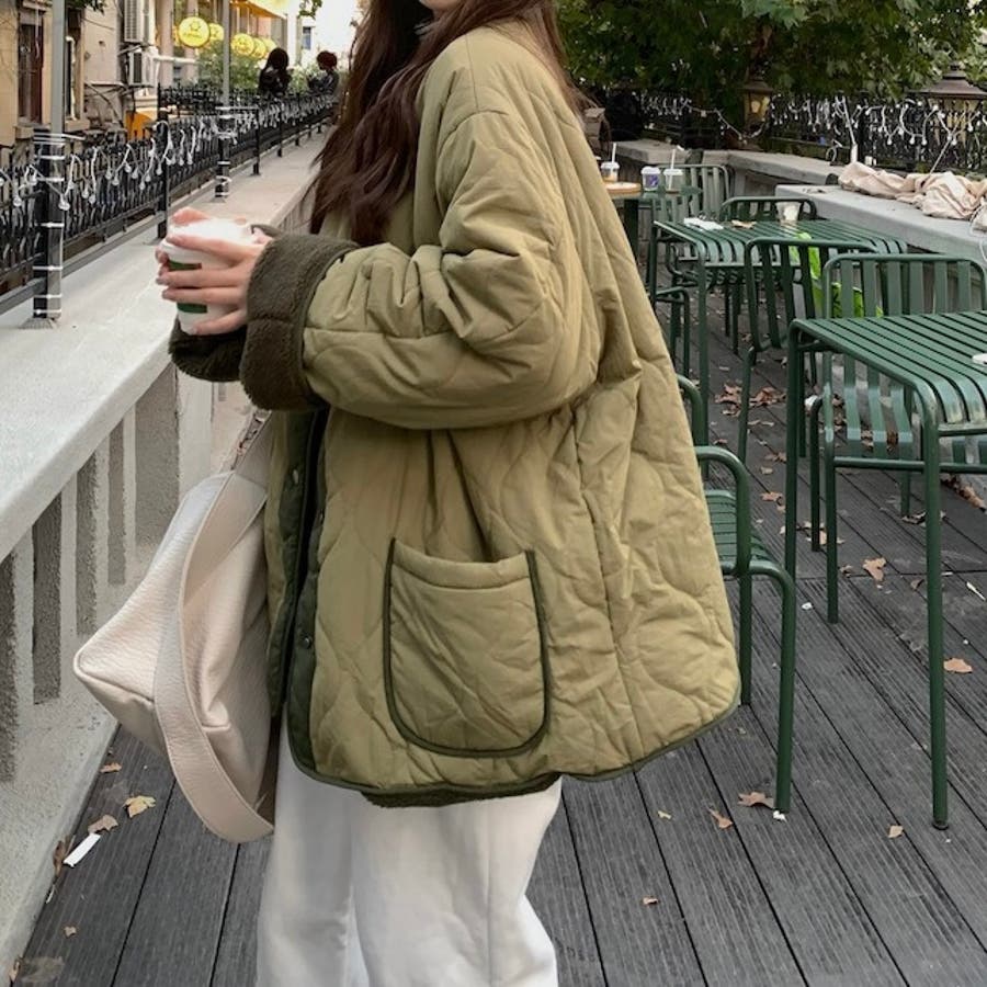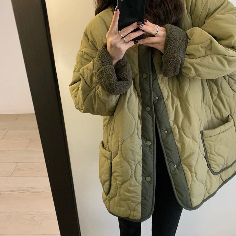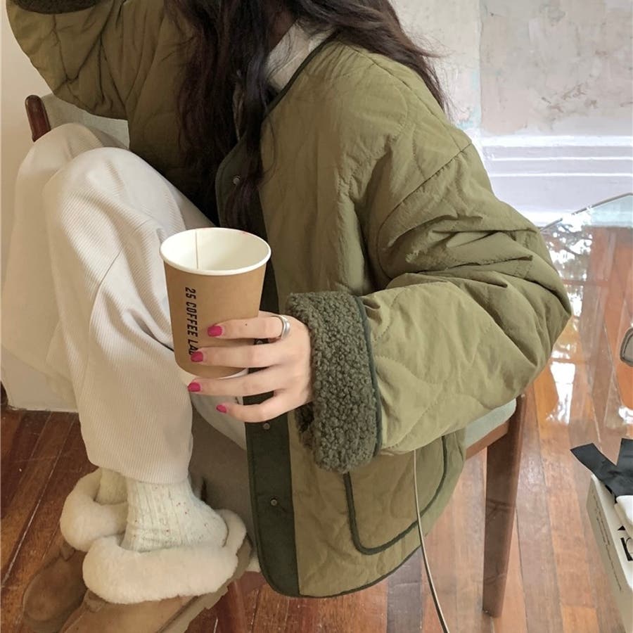 大人 カジュアル きれいめ 韓国ファッション 韓国コーデ オフィスカジュアル ゆったり 防寒 アウター ブルゾン ジャケット はおり 衿なし ノーカラー ハーフコート キルティングジャケット 秋服 冬服 20代 30代 40代 春 秋 冬