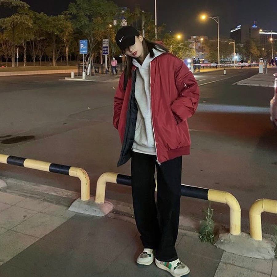 スウェットやニットを中にしっかり着込める、ルーズなサイズ感でコーデの幅も広がります。