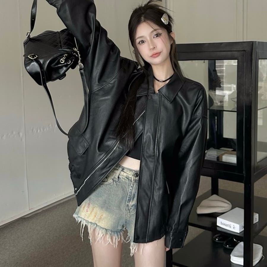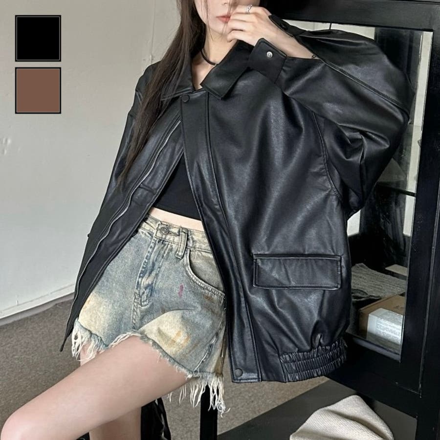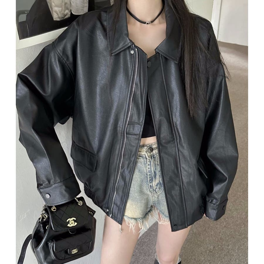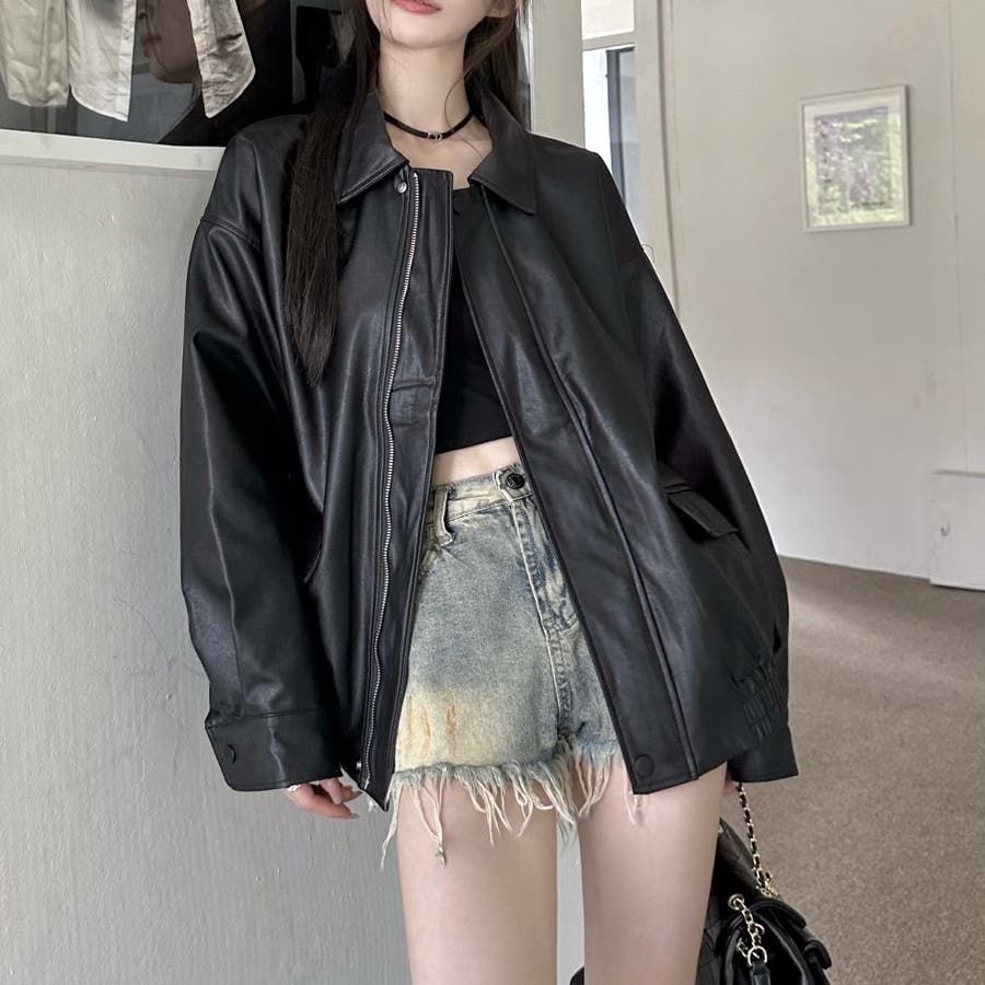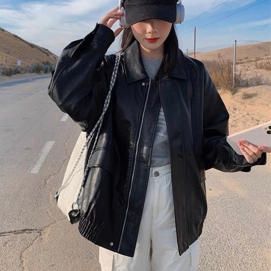 大人 カジュアル きれいめ 韓国ファッション 韓国コーデ 合皮 ブルゾン アウター ジャケット ビッグシルエット ゆったり 防寒 ビンテージ 古着 Y2K オフィスカジュアル 春服 冬服 秋服 10代 20代 30代 40代 春 冬 秋