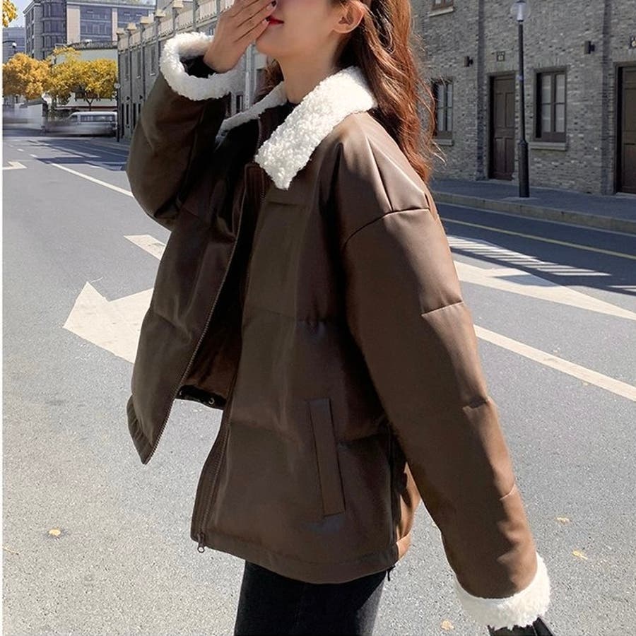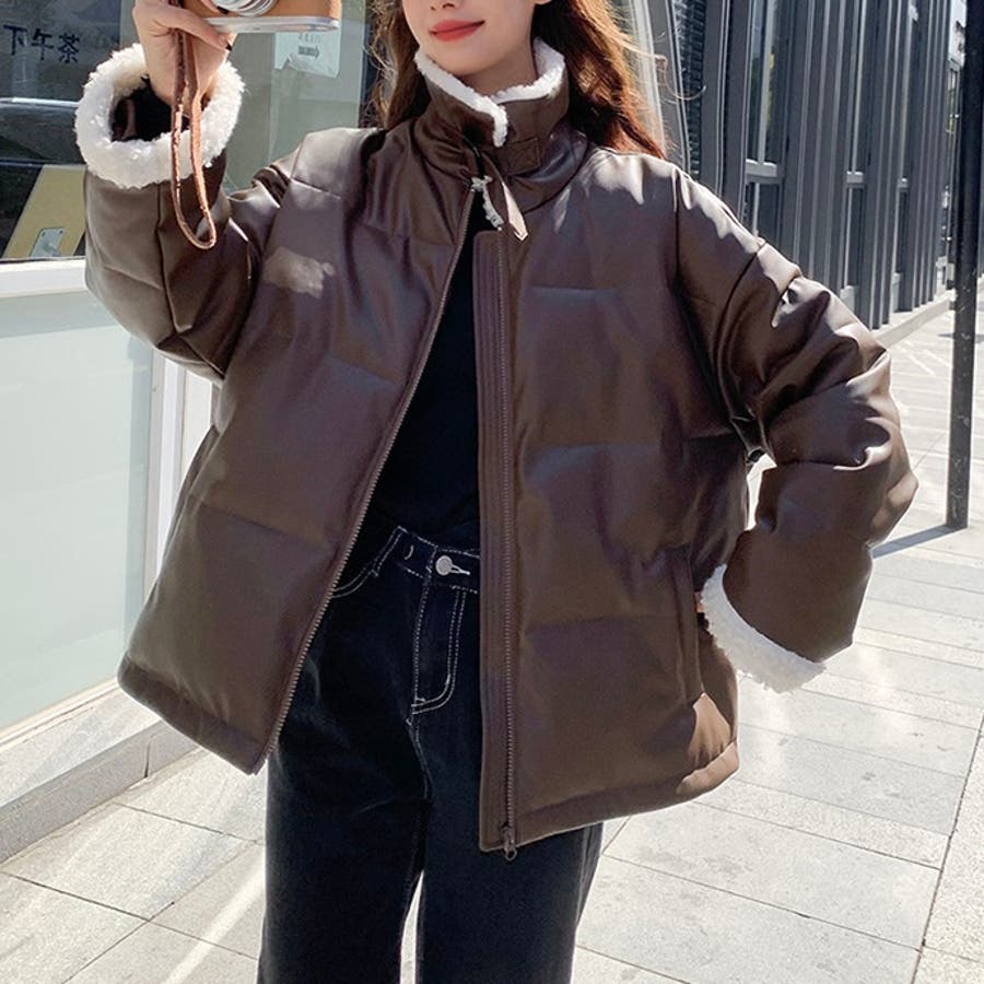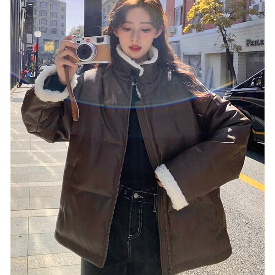 大人 カジュアル きれいめ 韓国ファッション 韓国コーデ Y2K オフィスカジュアル ビッグシルエット 大きいサイズ 防寒 アウター コート エコレザー 春服 冬服 秋服 10代 20代 30代 40代 春 冬 秋