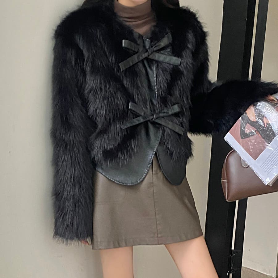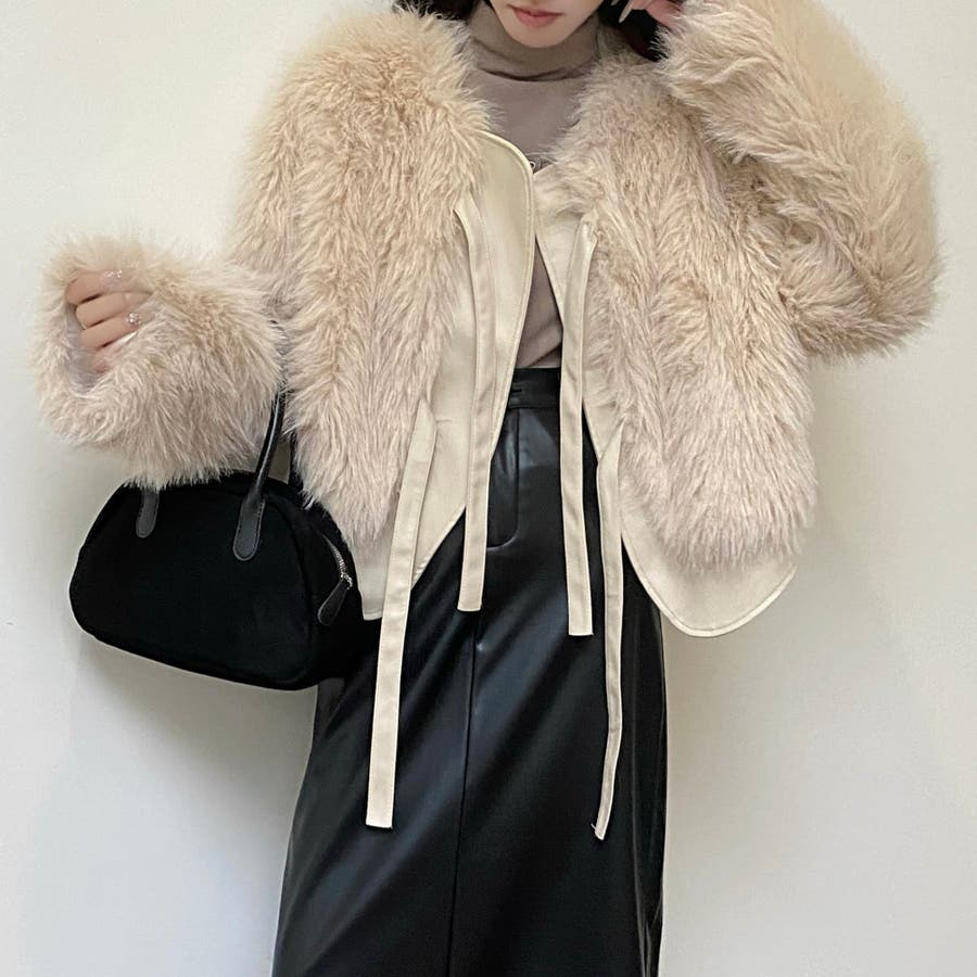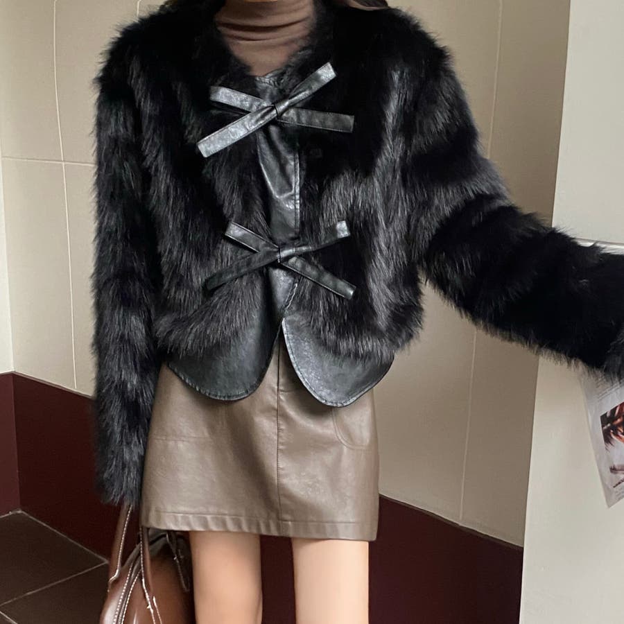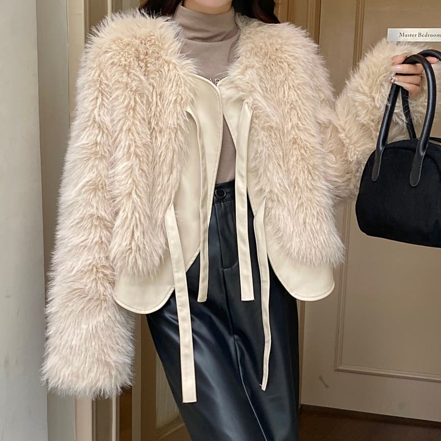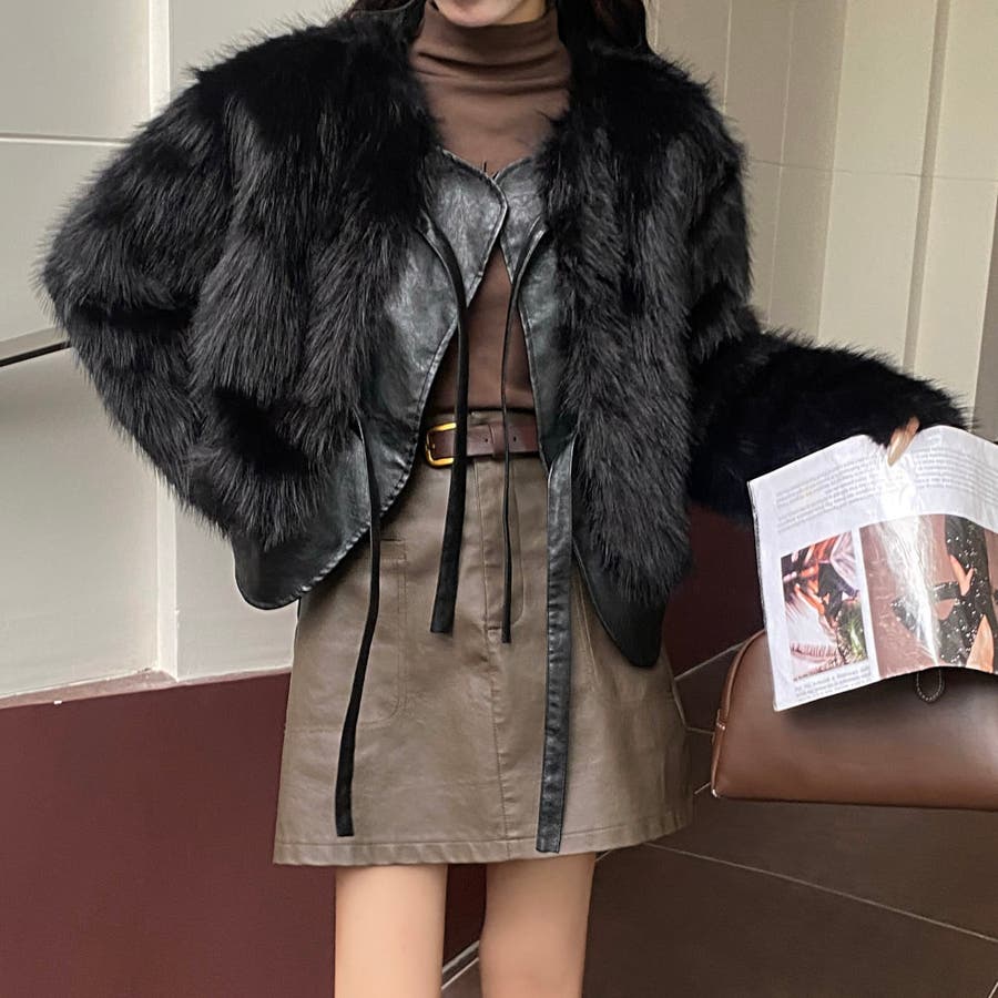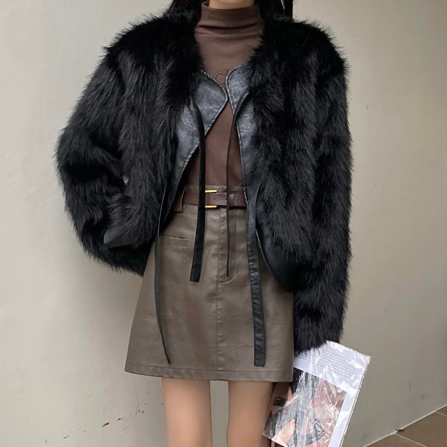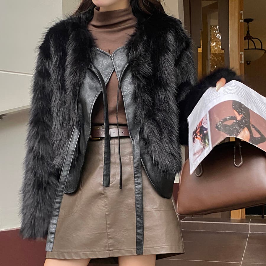 柔らかくボリュームのあるファーと、フェイクレザーとの切替えデザインがエレガントさとトレンド感を兼ね備えています。