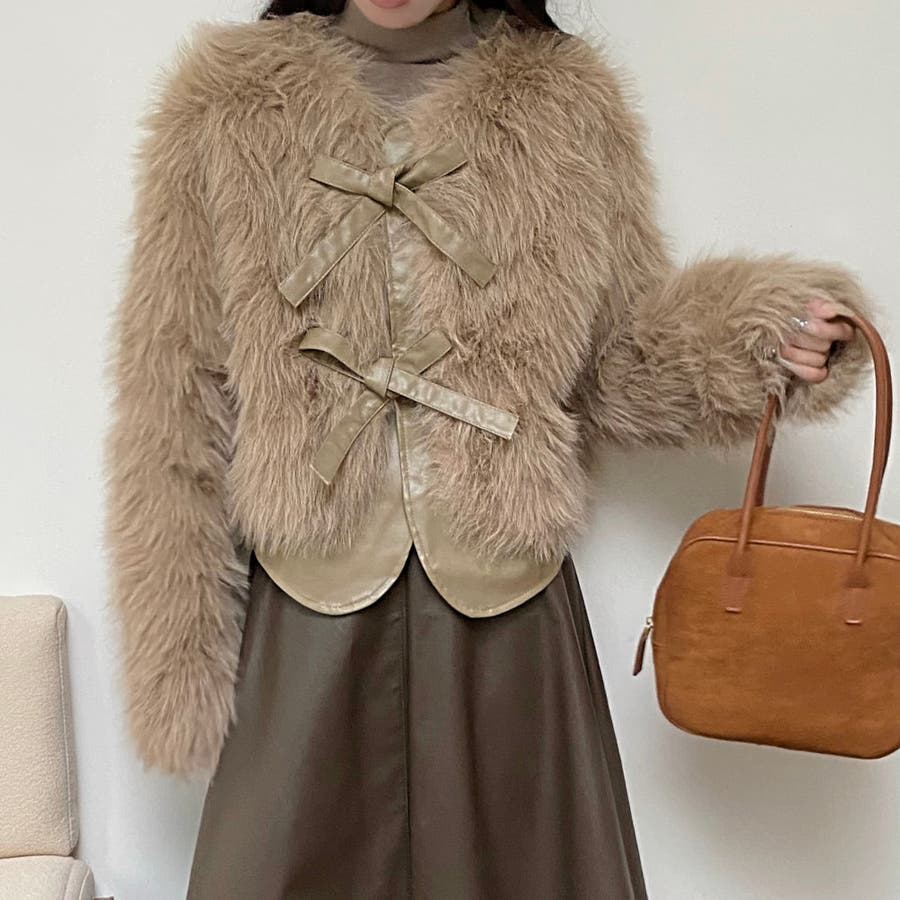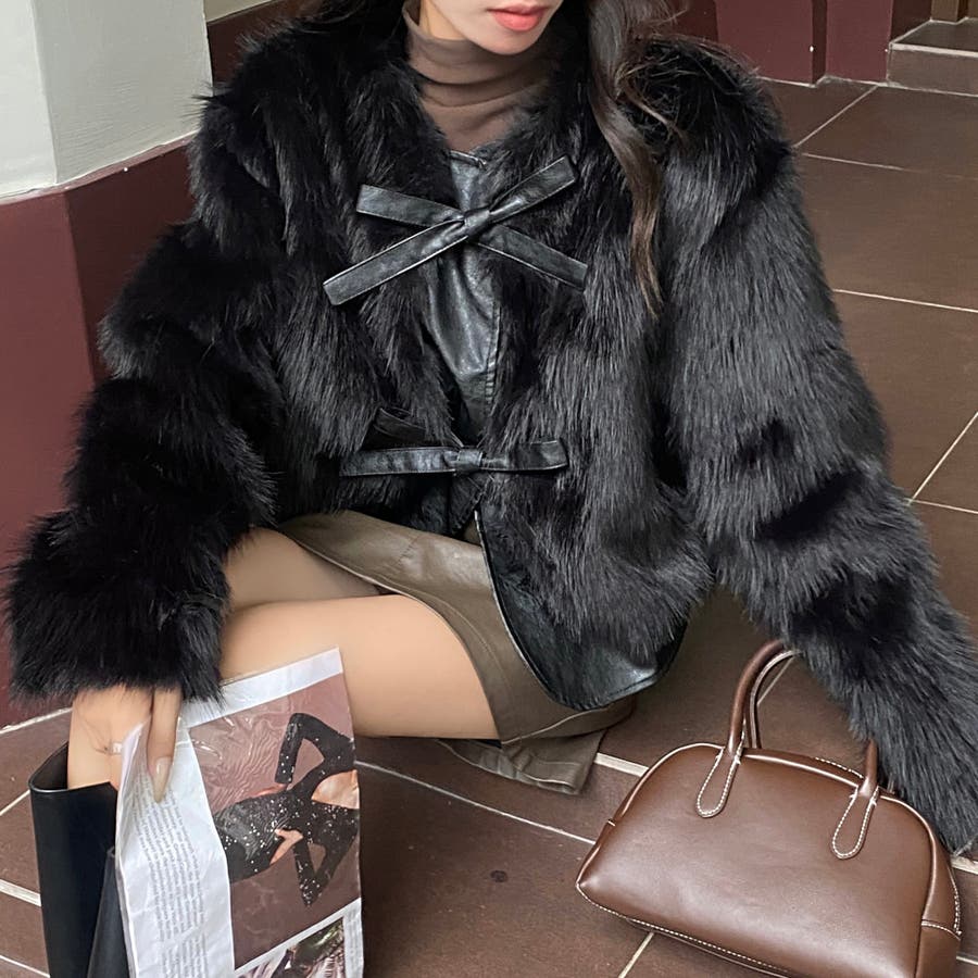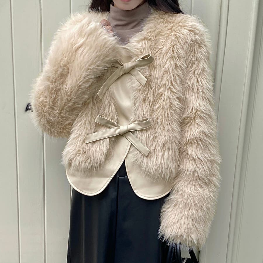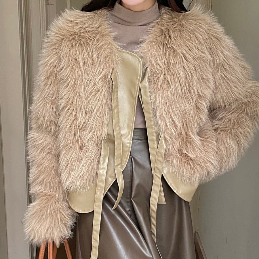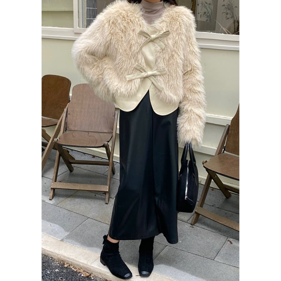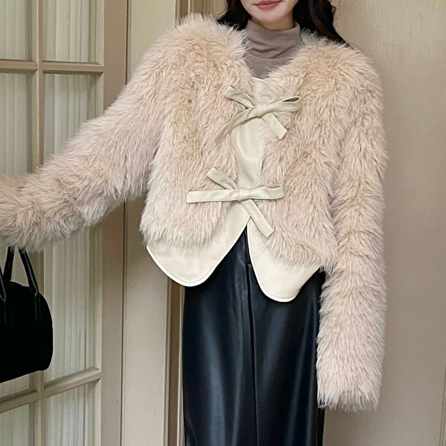 柔らかくボリュームのあるファーと、フェイクレザーとの切替えデザインがエレガントさとトレンド感を兼ね備えています。
