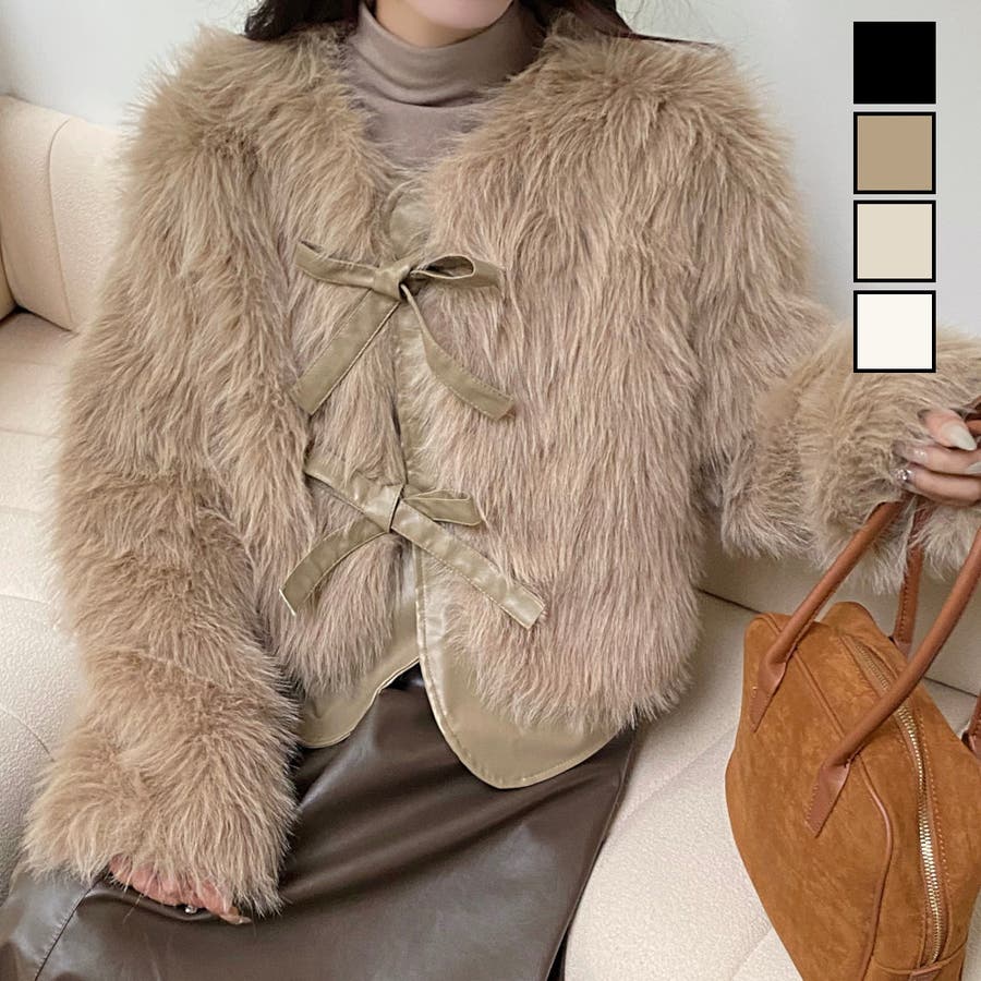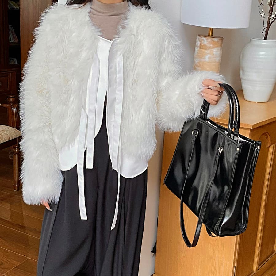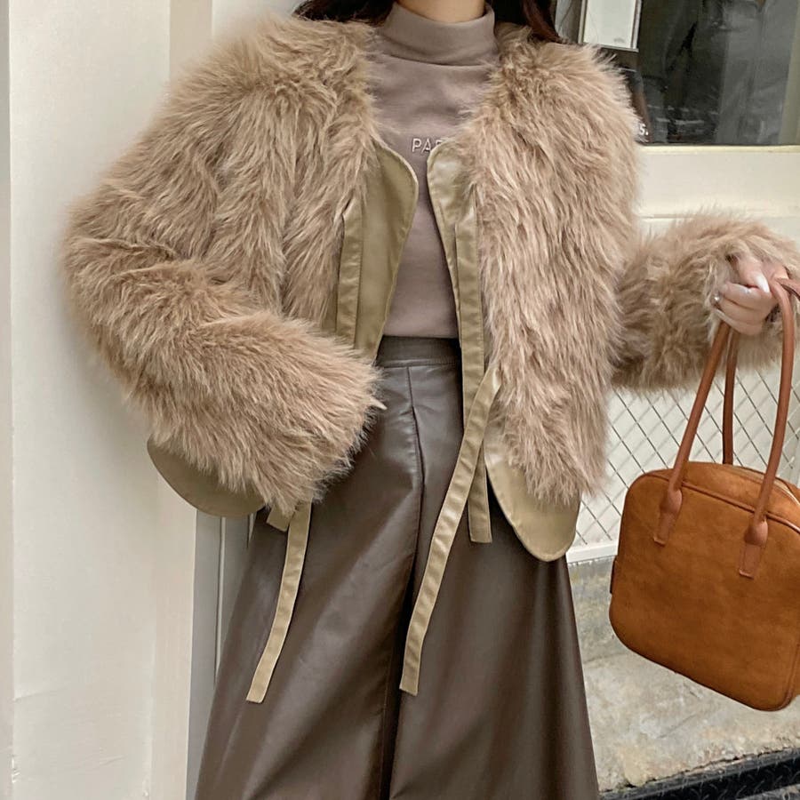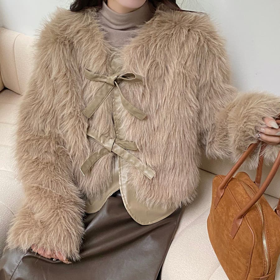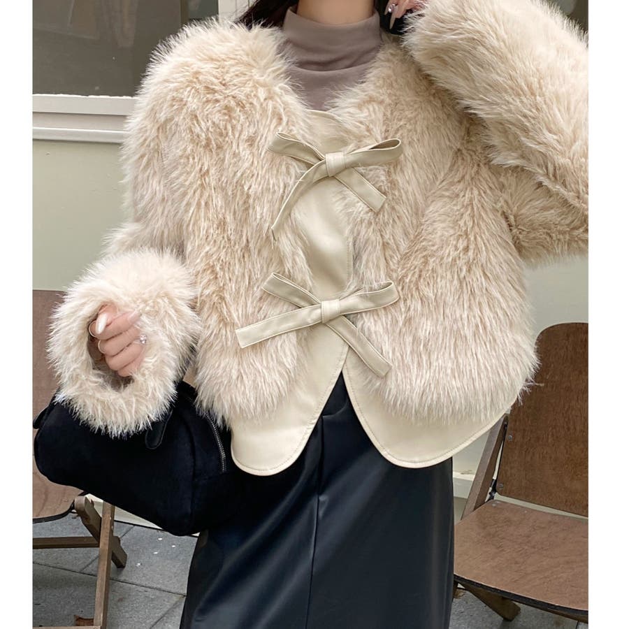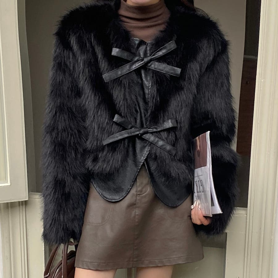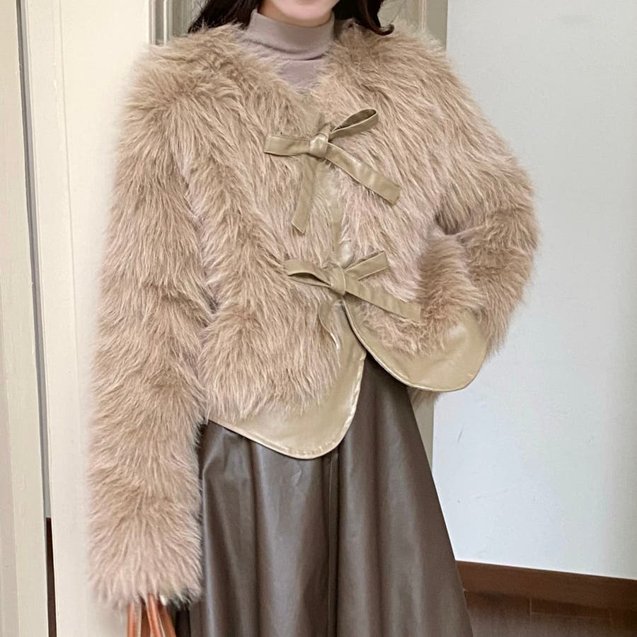 柔らかくボリュームのあるファーと、フェイクレザーとの切替えデザインがエレガントさとトレンド感を兼ね備えています。