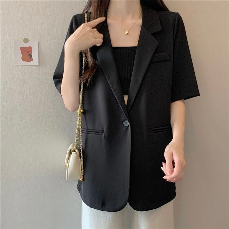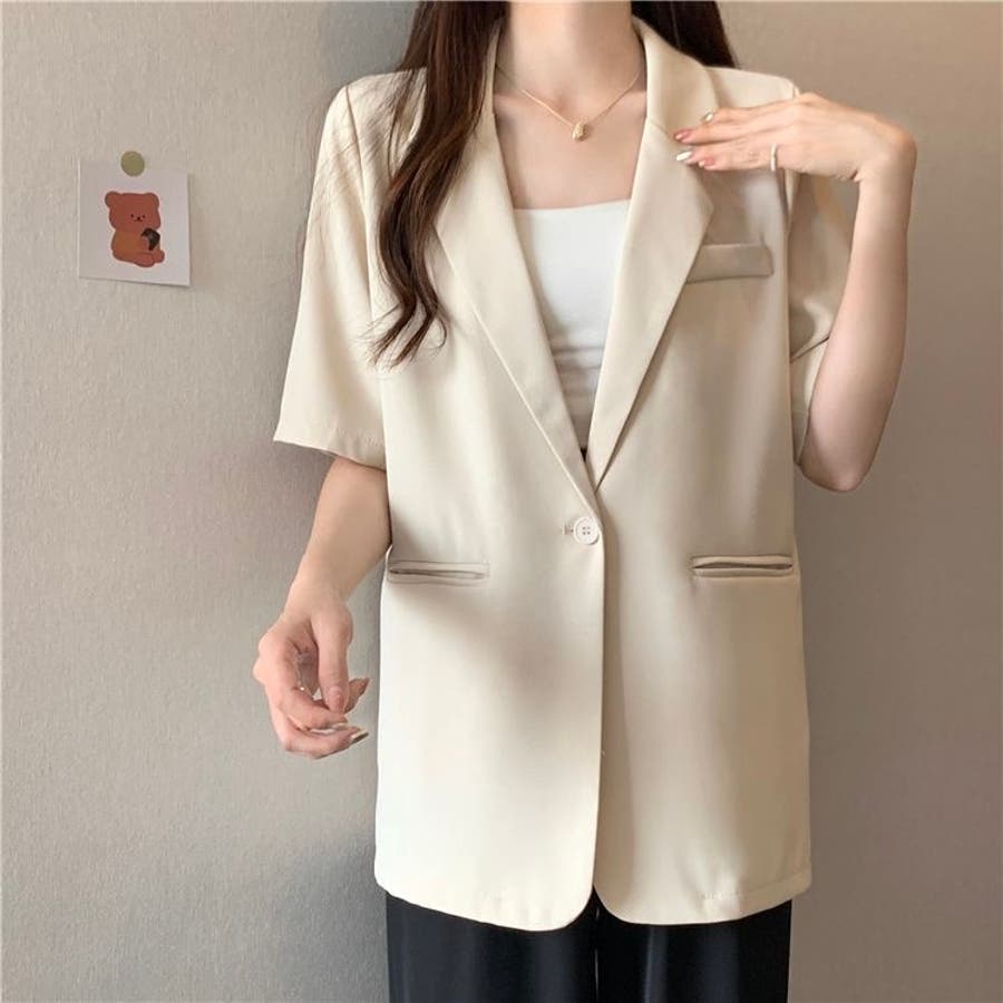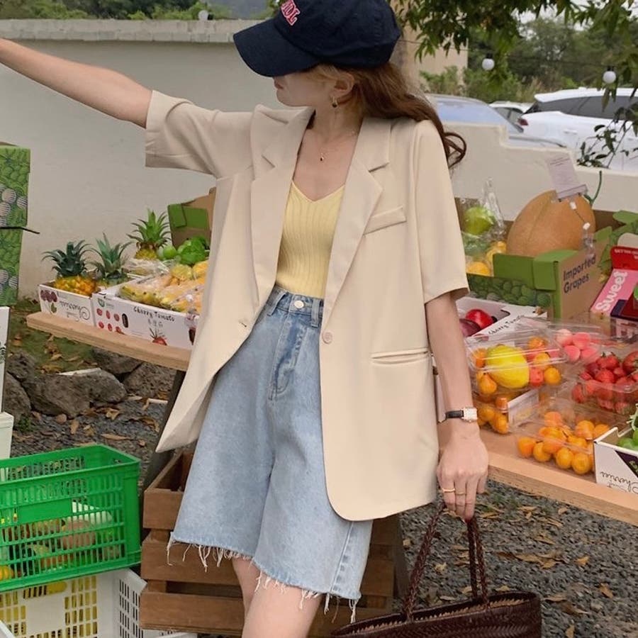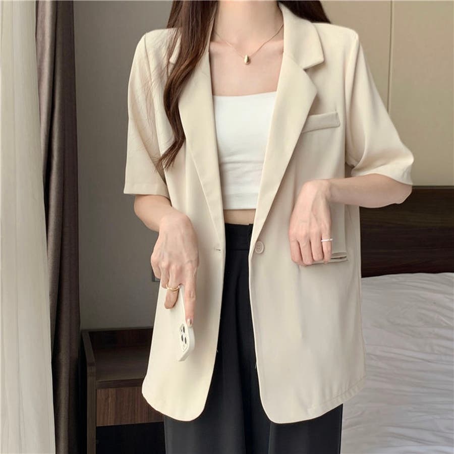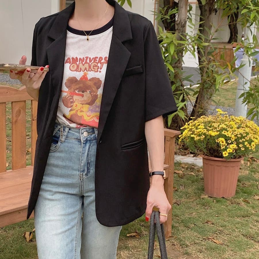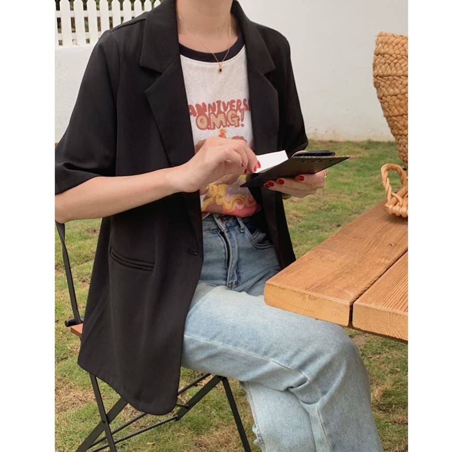【春夏新作】1つボタンゆったり半袖ジャケット