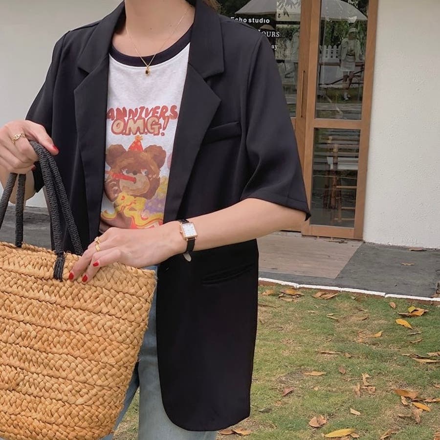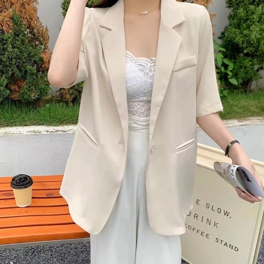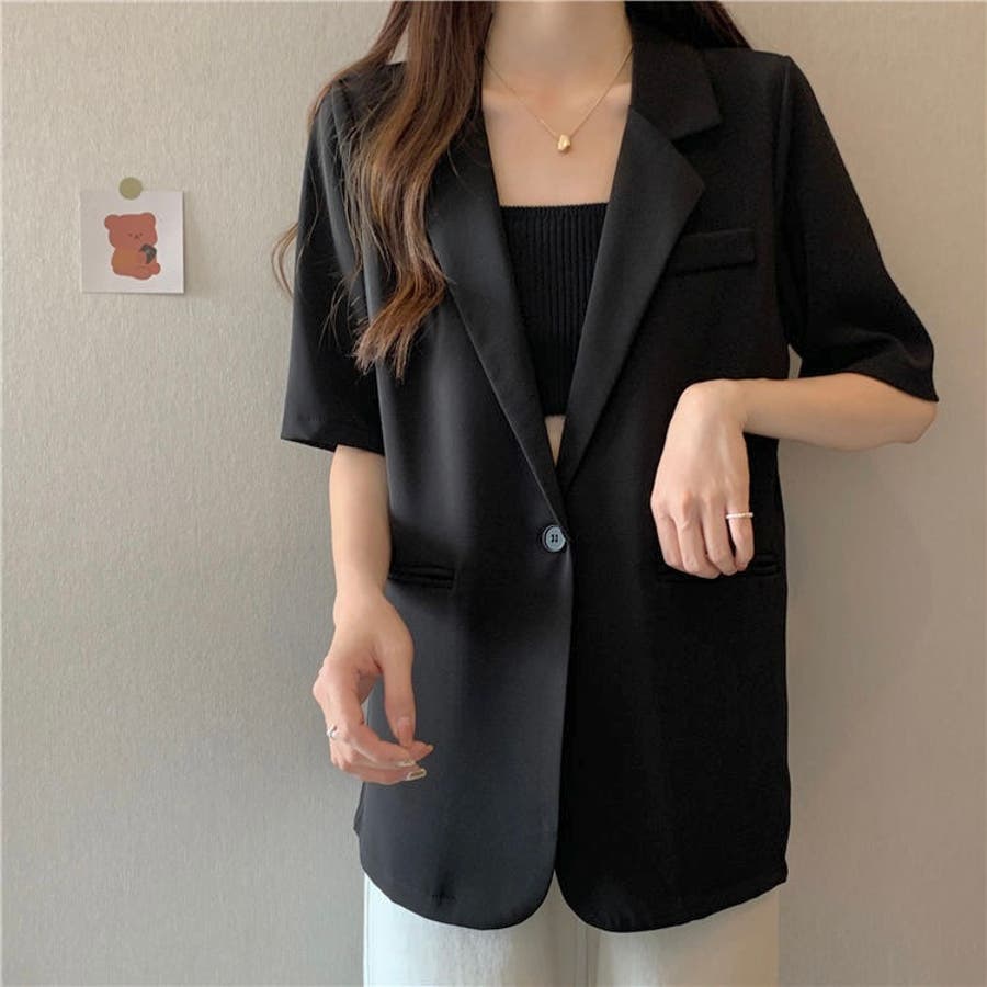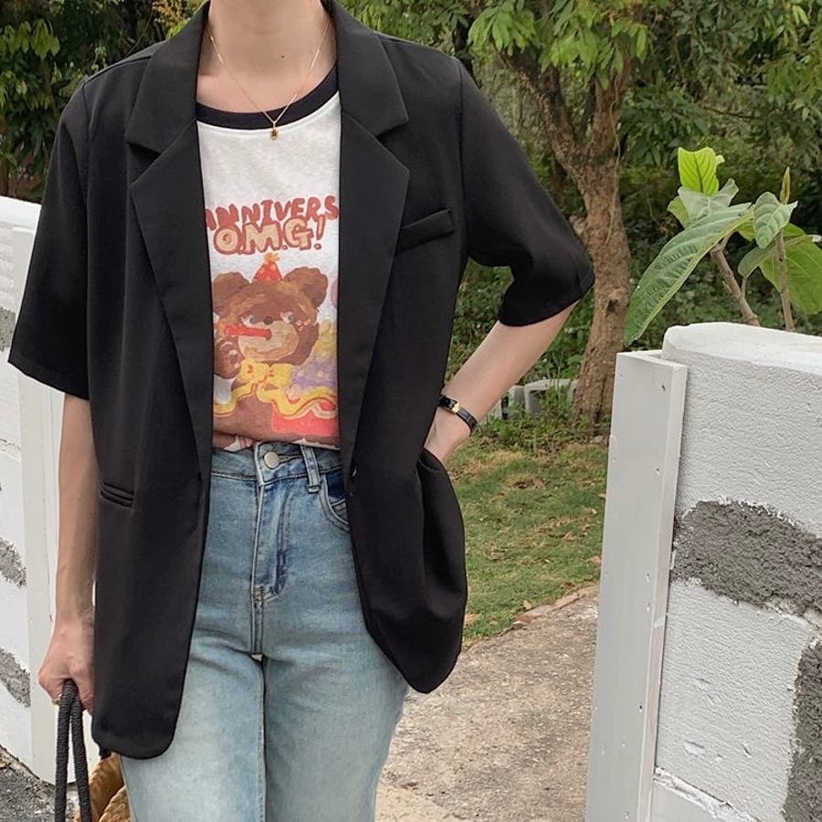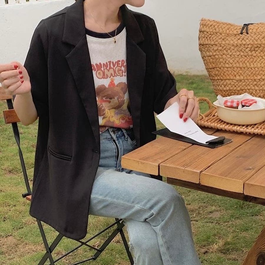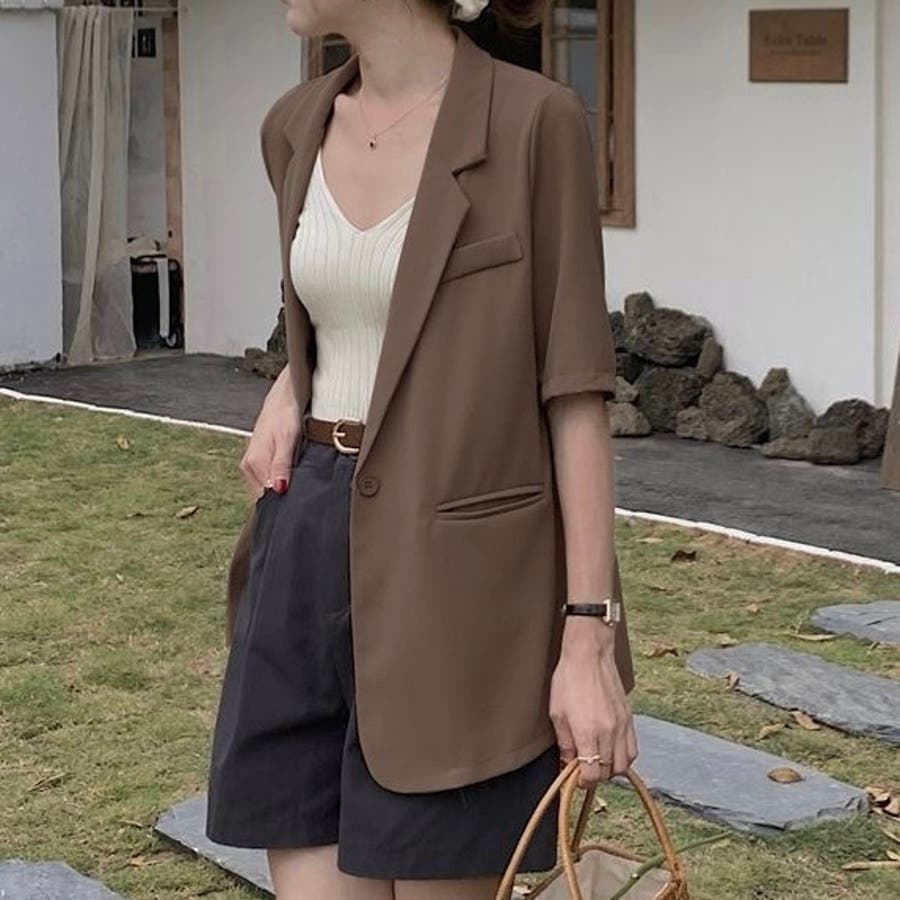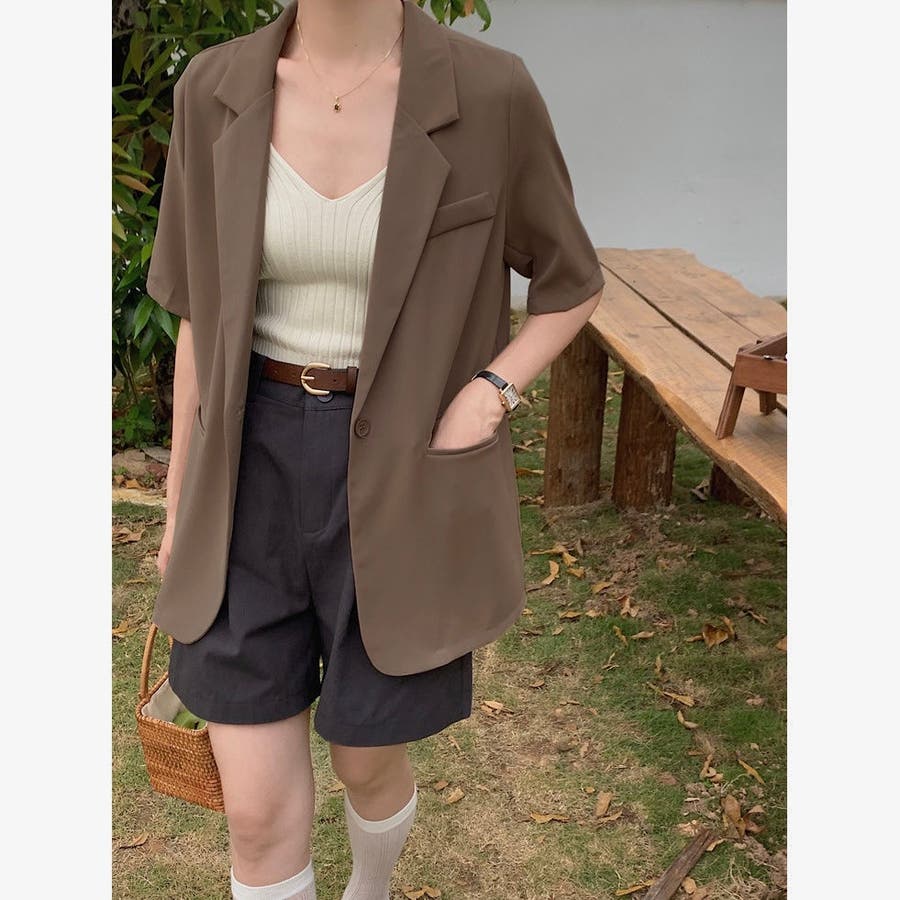 【春夏新作】1つボタンゆったり半袖ジャケット