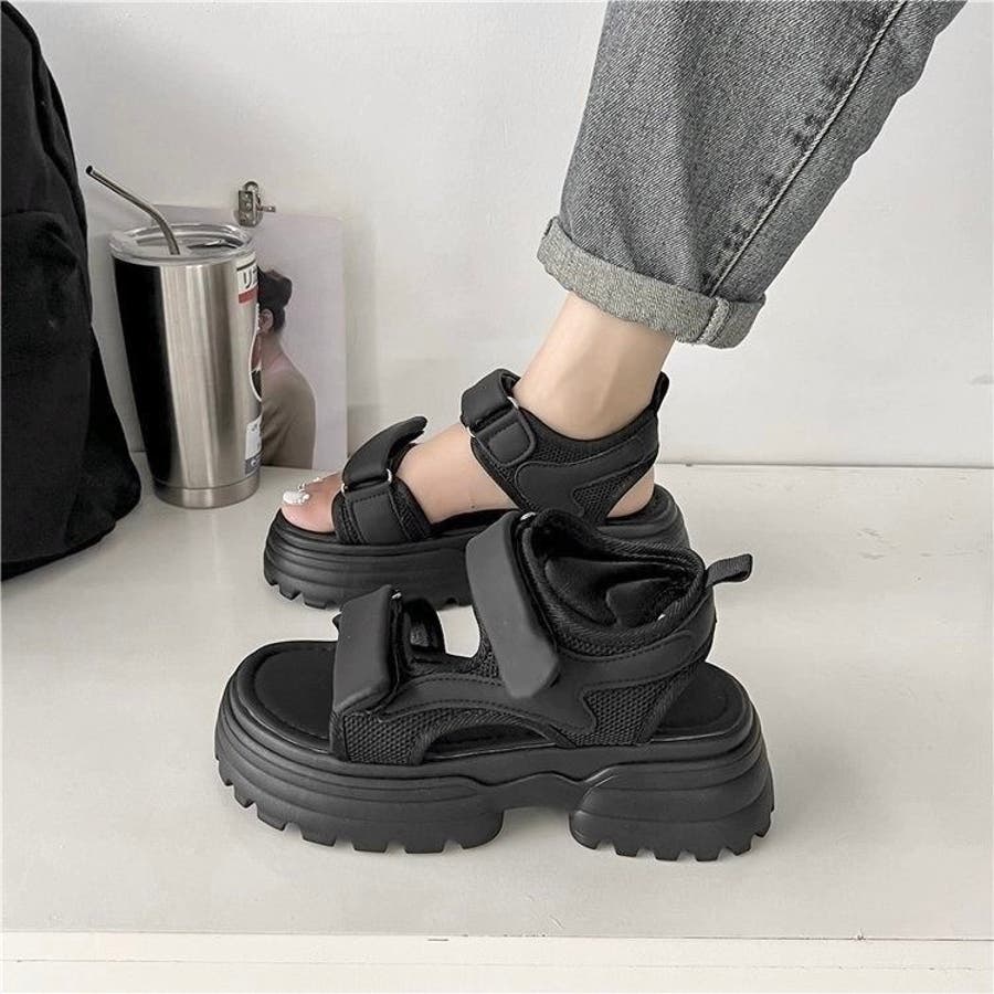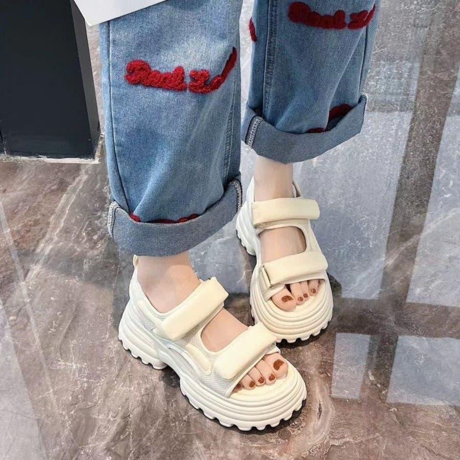 大人 カジュアル きれいめ 韓国ファッション 韓国コーデ Y2K オフィスカジュアル スポーツサンダル ベルクロ ボリュームサンダル 春服 夏服 秋服 10代 20代 30代 40代 春 夏 秋