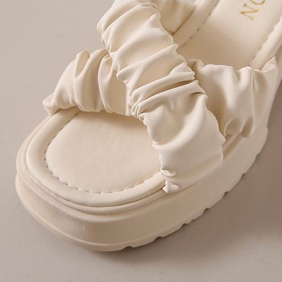 トレンドのギャザーディテールが足元にアクセントを加え、春夏のコーディネートを一気に格上げしてくれます。