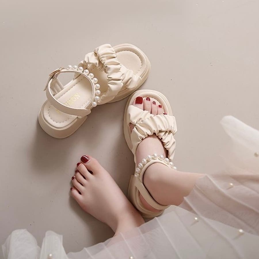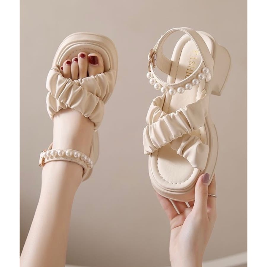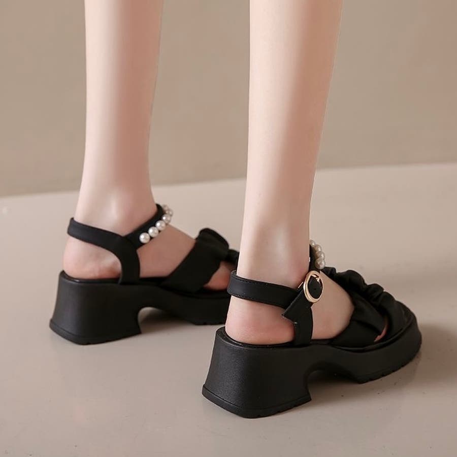 【春夏新作】パール付きストラップ厚底サンダル
