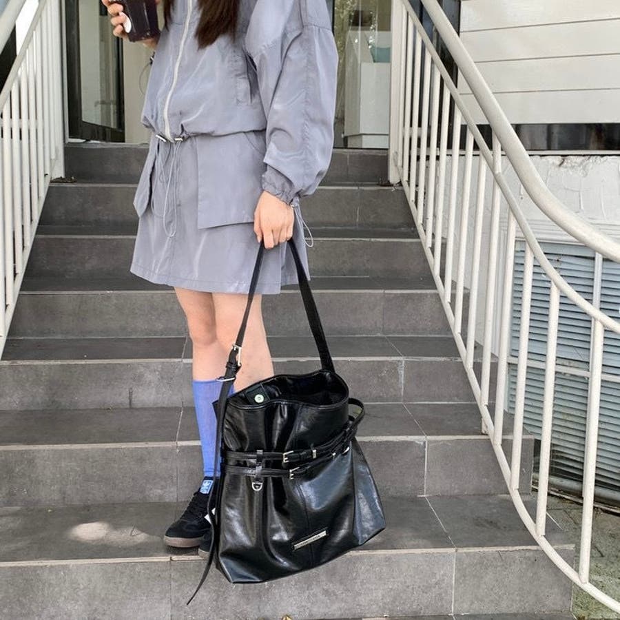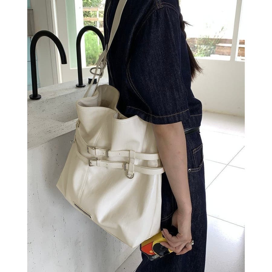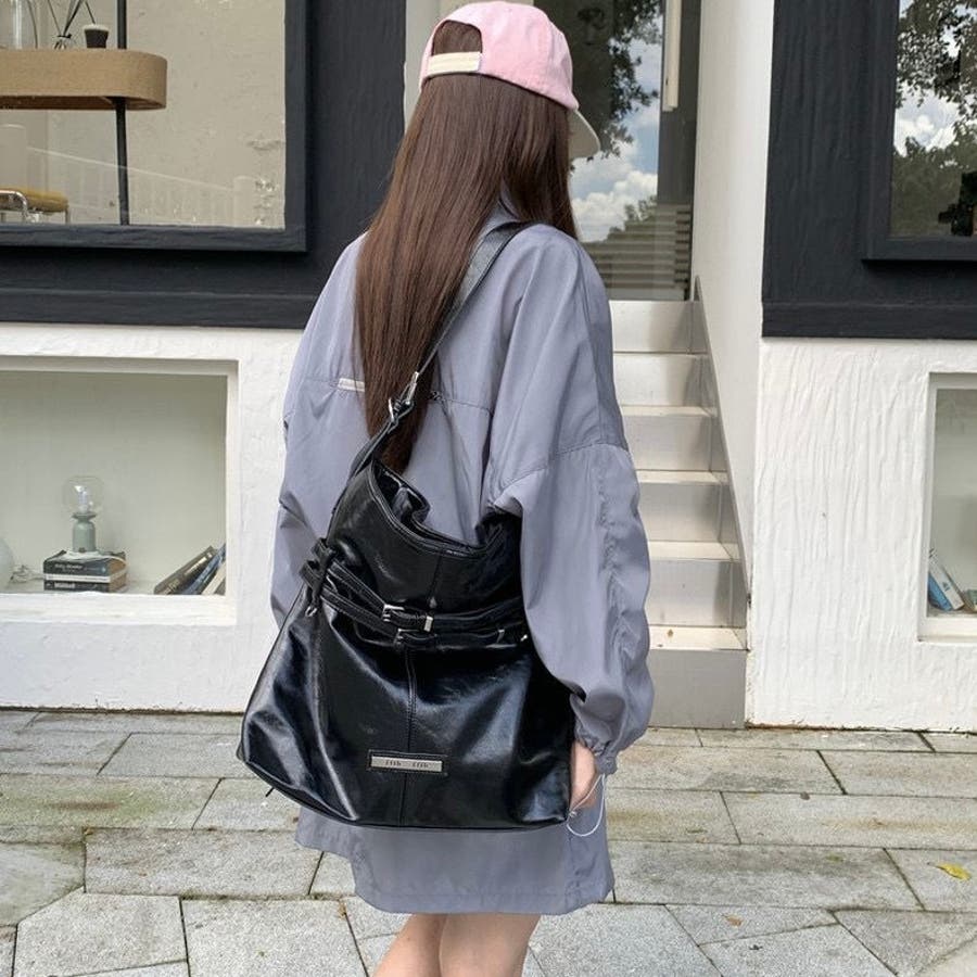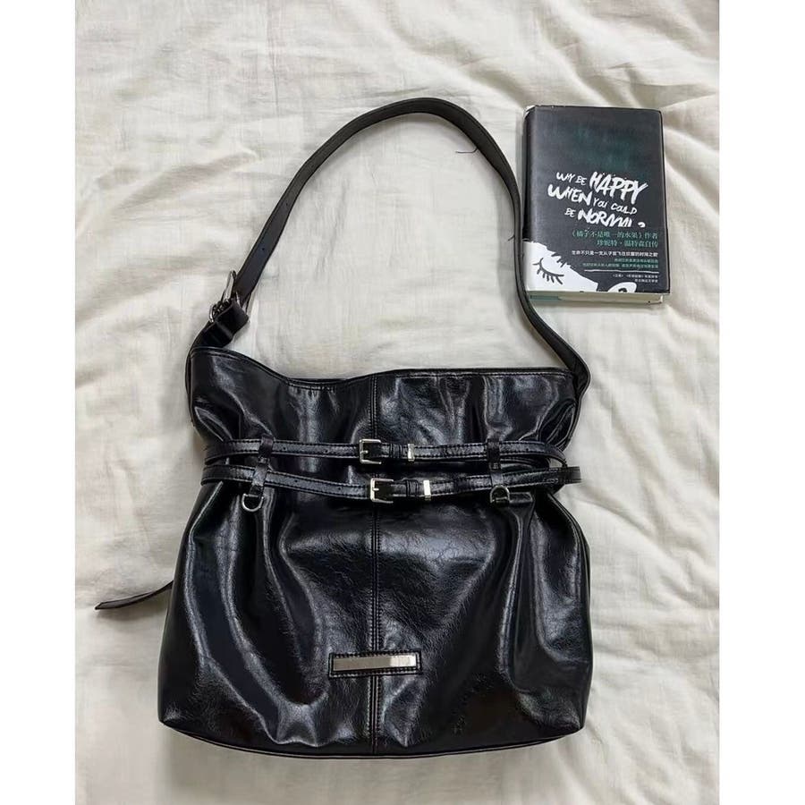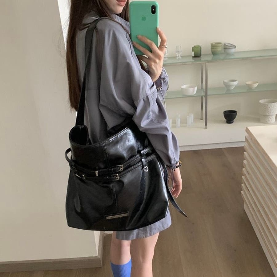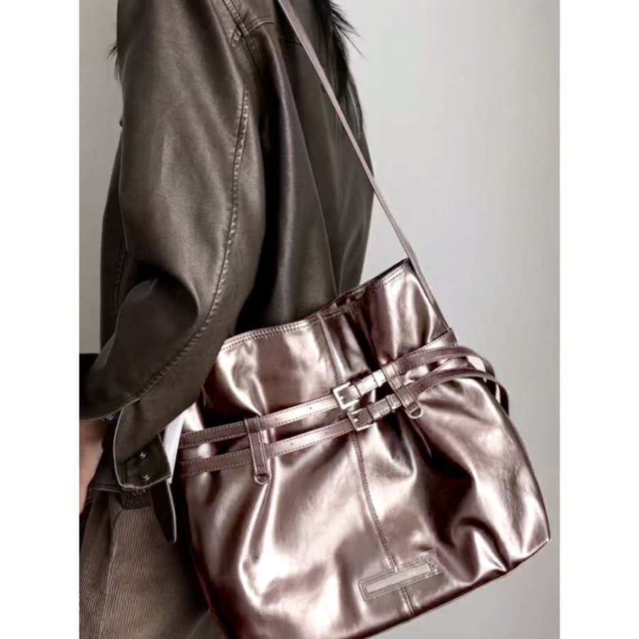 【春夏新作】ベルトデザインシャイニーショルダーバッグ