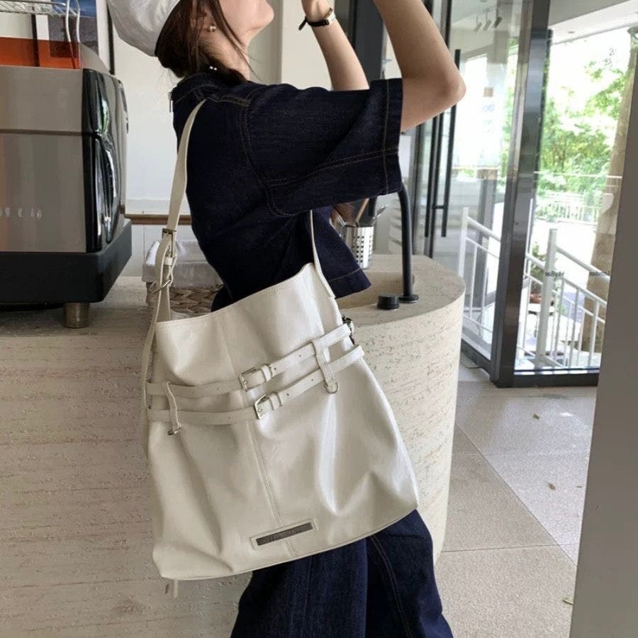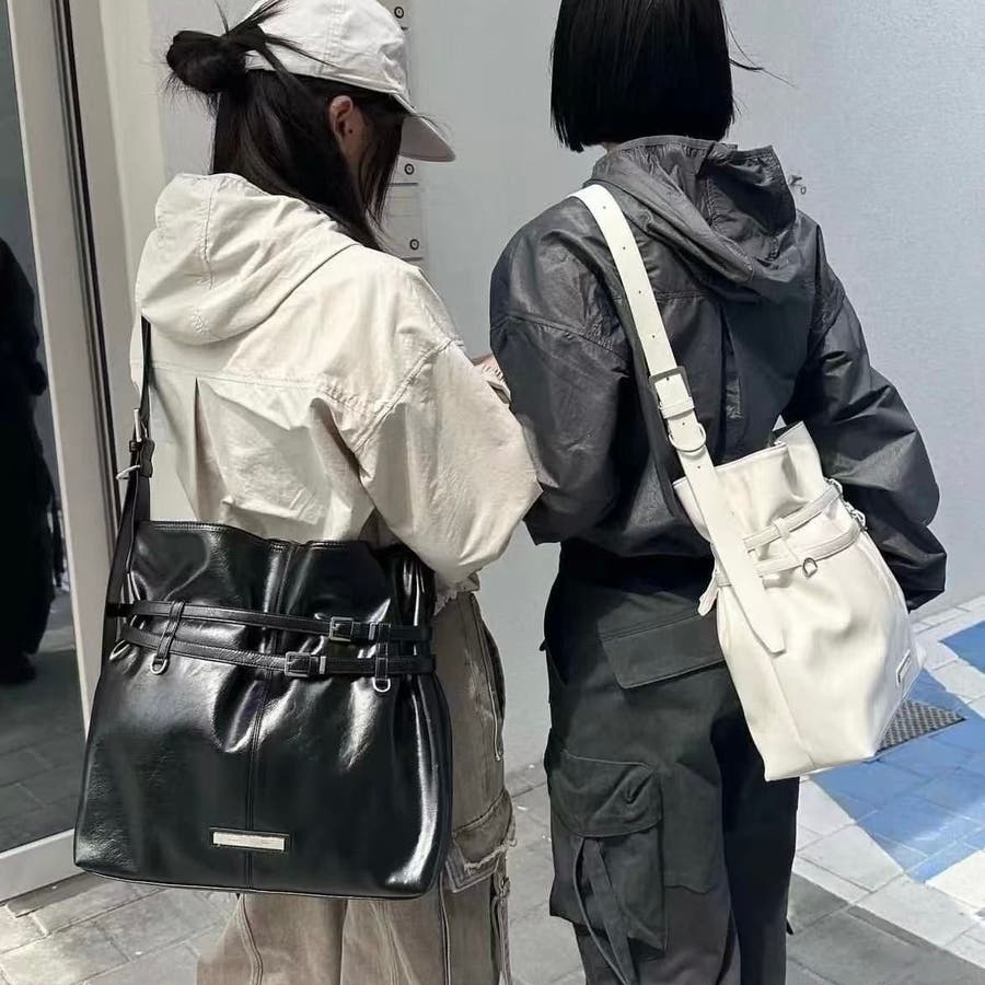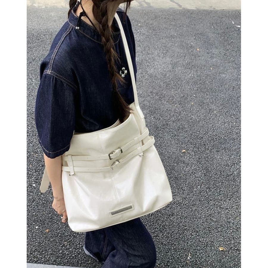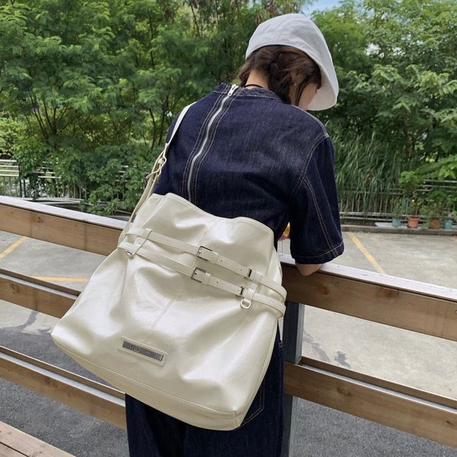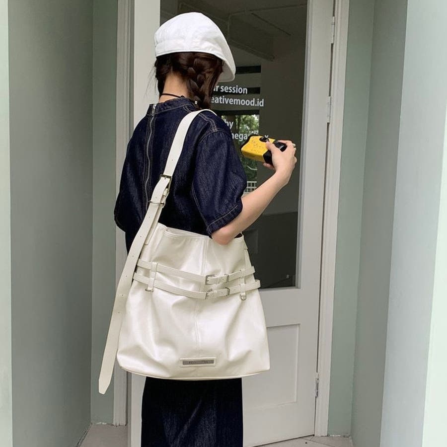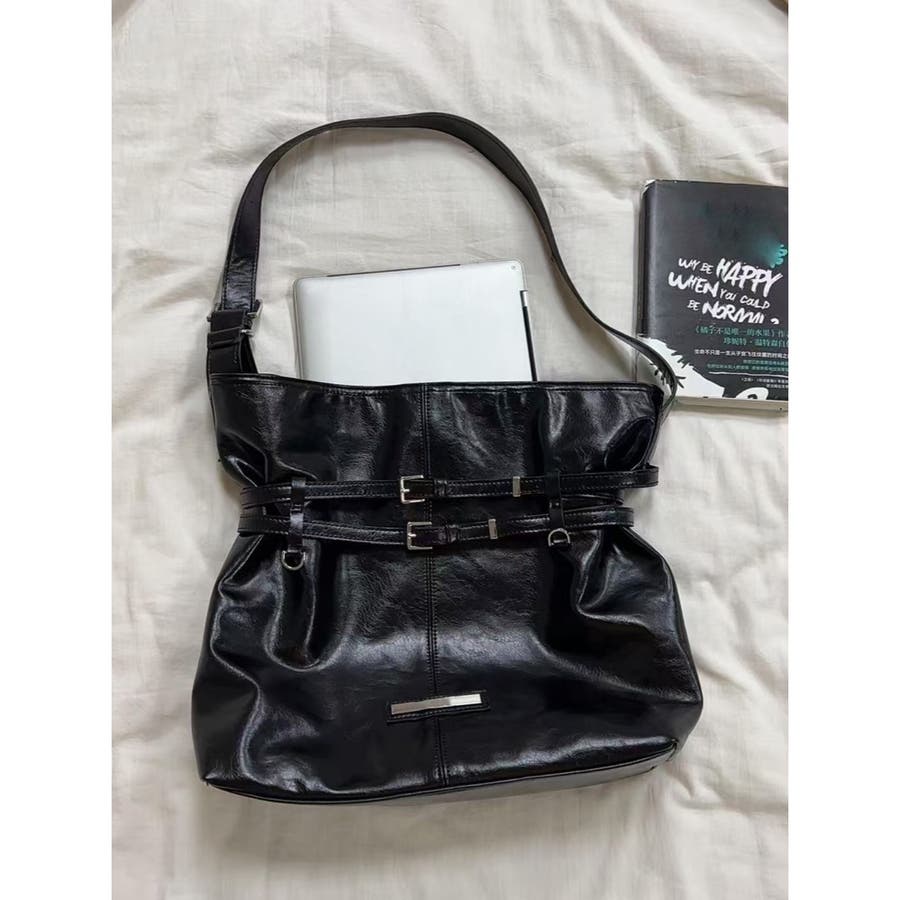 【春夏新作】ベルトデザインシャイニーショルダーバッグ