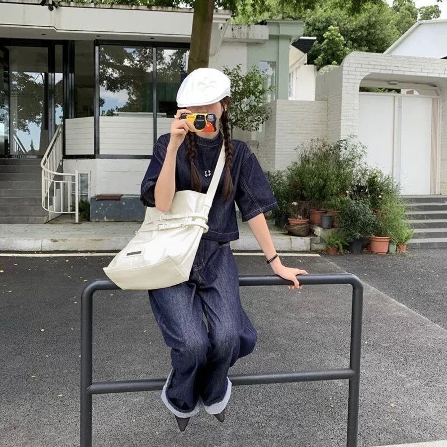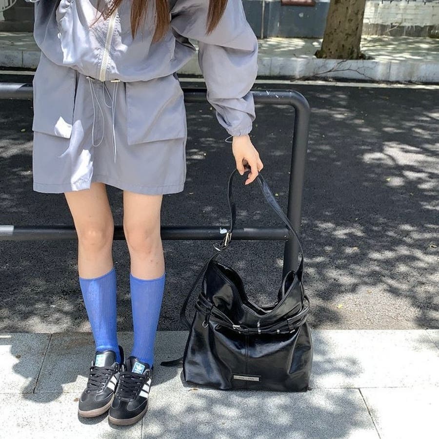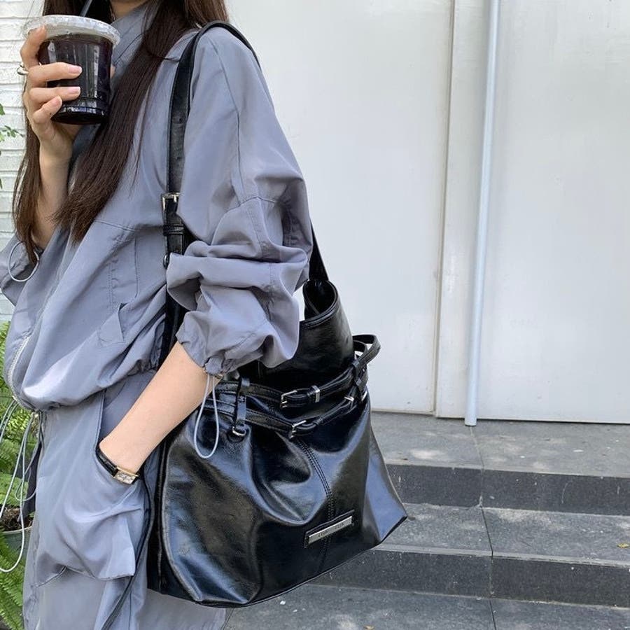 大人 カジュアル きれいめ 韓国ファッション 韓国コーデ Y2K オフィスカジュアル 春服 夏服 秋服 シャイニー メタリック エナメル 大きめ 10代 20代 30代 40代 春 夏 秋