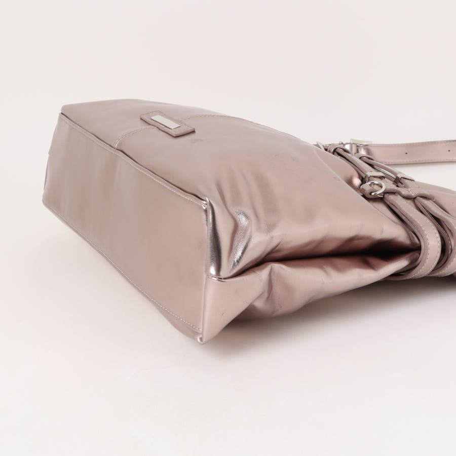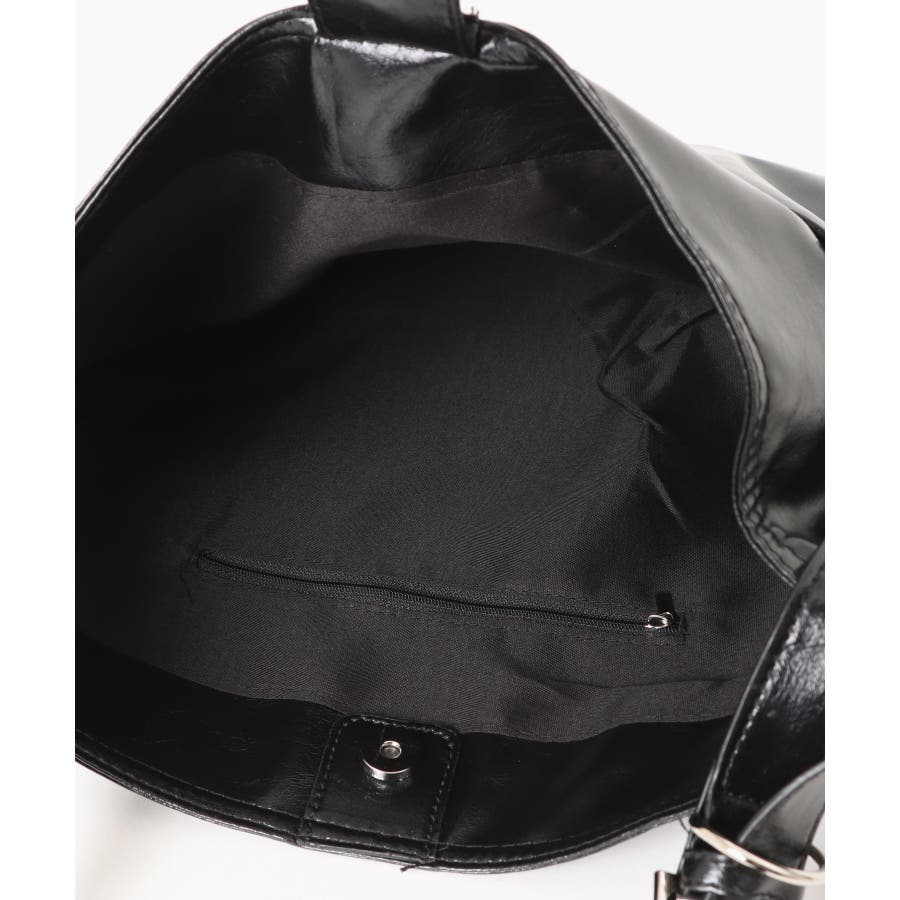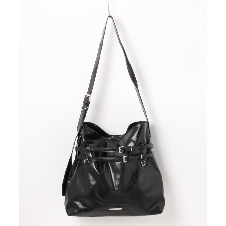 艶やかなフェイクレザーが高級感を演出する、2ベルトデザインのショルダーバッグです。