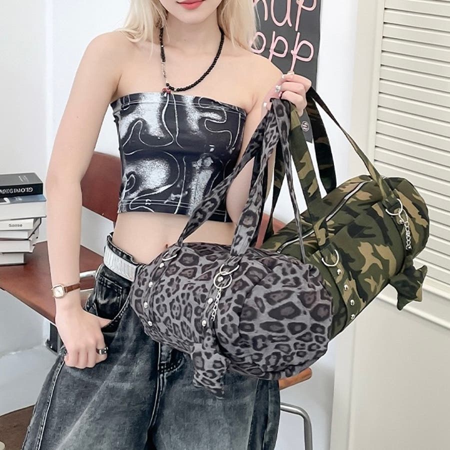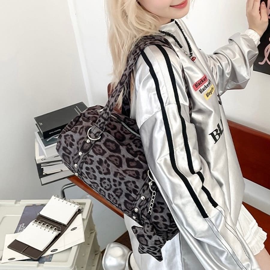 大人 カジュアル きれいめ 韓国ファッション 韓国コーデ Y2K ショルダーバッグ ボストンバッグ ドラムバッグ レオパード柄 ミニバッグ 春服 夏服 秋服 10代 20代 30代 40代 春 夏 秋