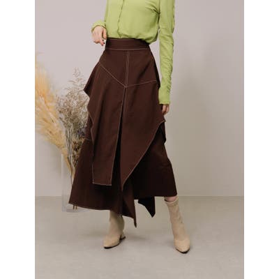 バイカラーのステッチがアクセントになった立体的なデザインスカート。