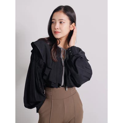 フリルBIGカラーは肩周りをスッキリと見せてくれる丈感とボリュームにこだわり、更に中心部分の丈を長めにする事でハイウエストボトムと合わせた時にレイヤード感が出て、立体的な着こなしをお楽しみいただけます。