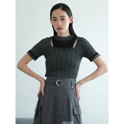 ●ニットを二枚重ね着しているように見えるレイヤード風ニットトップス。