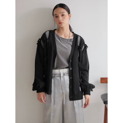 ●トレンドのリボンディテールが印象的なニットカーディガン。