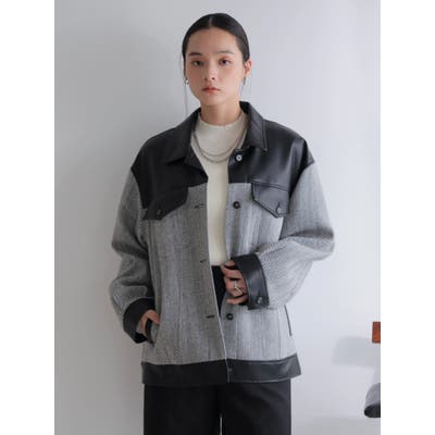 ミックスはヘリンボンとフェイクレザーを組み合わせて大人カジュアルに。
