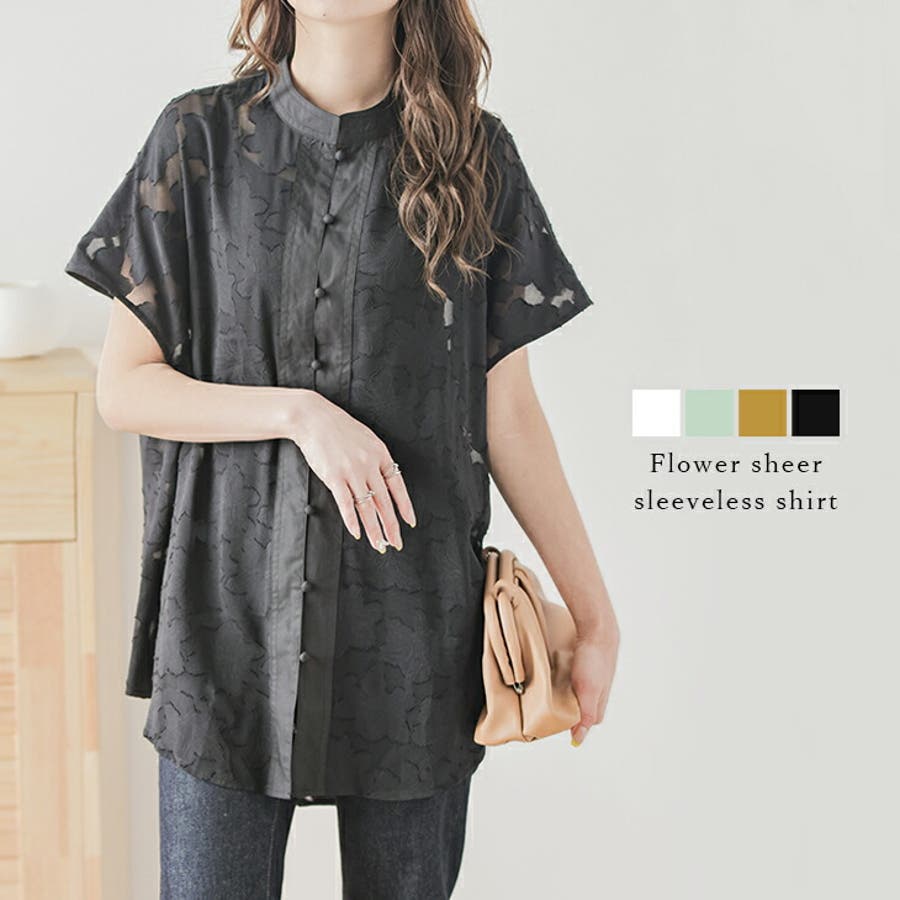 【イエロー】フレンチスリーブシャツ ブラウス ジャガード