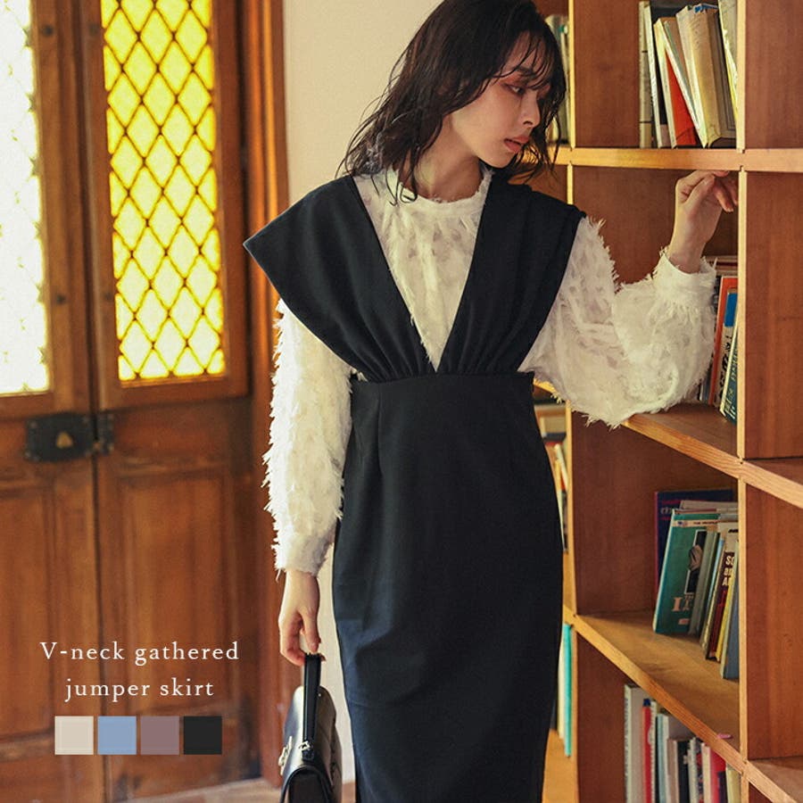】ジャンパースカート ジャンスカ Vネック