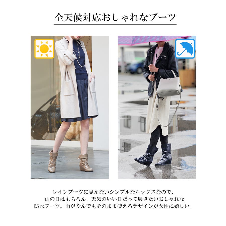 雨の日のお出かけはもちろん、通常のブーツとしてもお天気を選ばず履けます。
