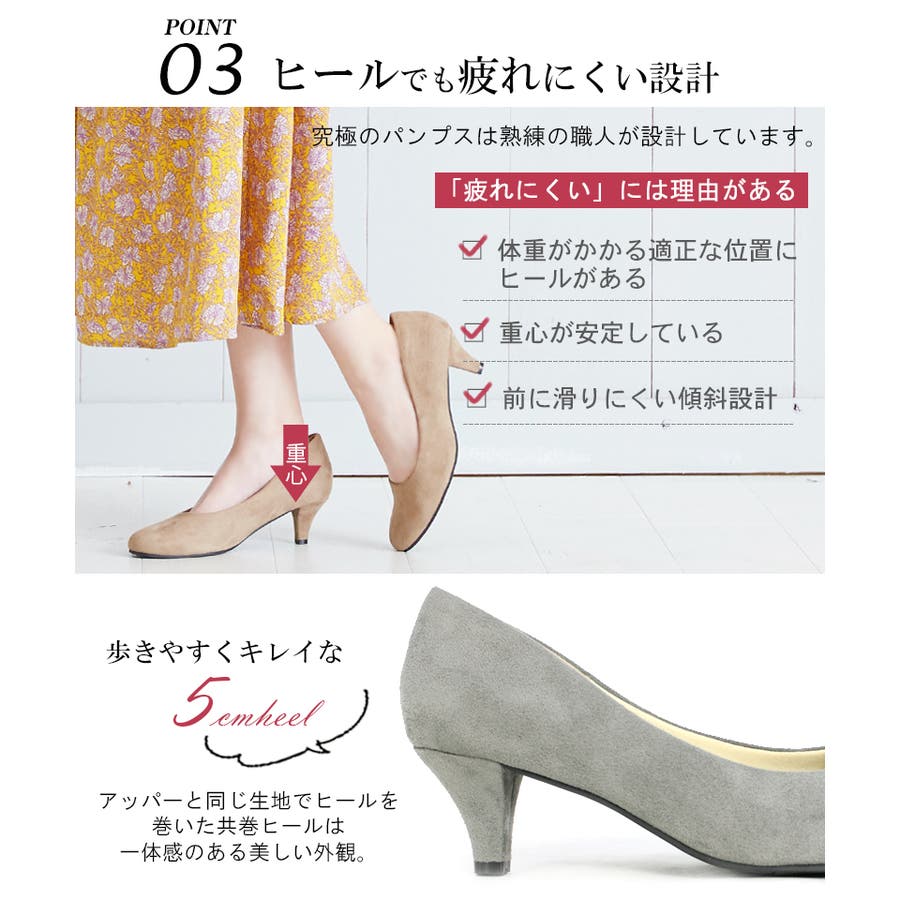 1.外反気味・甲高幅広でも痛くなりにくい 日本人の足に合ったパンプスです。