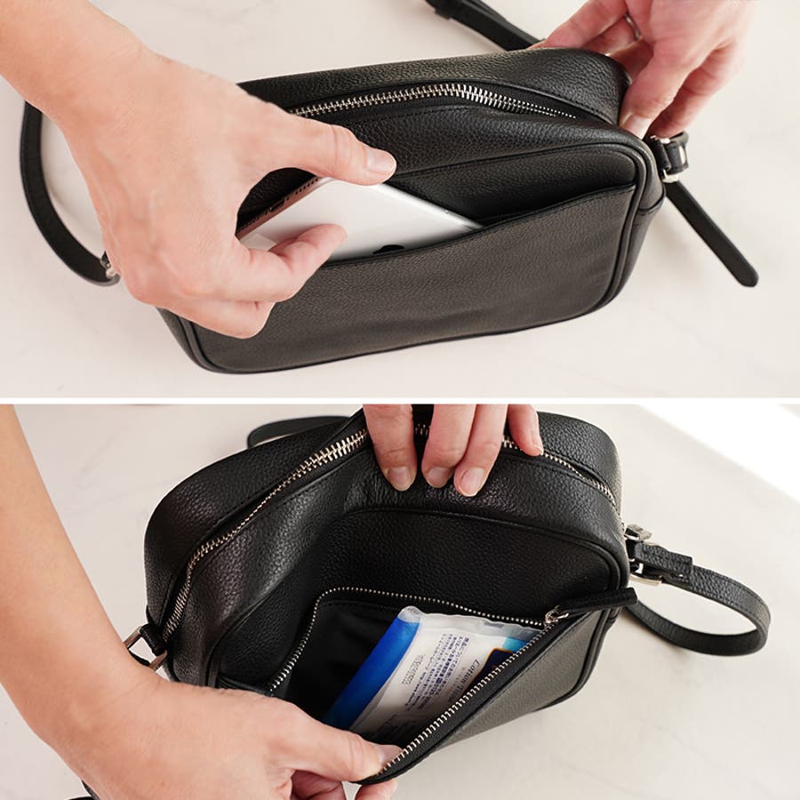 シンプルで使い勝手がちょうどいいサイズ感 本革ミニショルダーバック。 お財布 スマホ 鍵 ハンドタオル ポーチ メモ帳などなど・・・ 四角いフォルムに適度なマチがあるので見た目以上の容量。 アウトポケットは、オープンポケットとファスナーポケットの2つ付き。 すぐに取り出したいスマートフォンなどの収納に最適です。 ーインナーポケット1ー 大切な小物もしっかり収納できるファスナー付きポケット ーインナーポケット2ー 小物を入れるのに最適な仕切りポケット 使いやすいシンプルデザイン、ベーシックな3色展開。 普段使いから、フォーマルなお出かけまでOK。 |