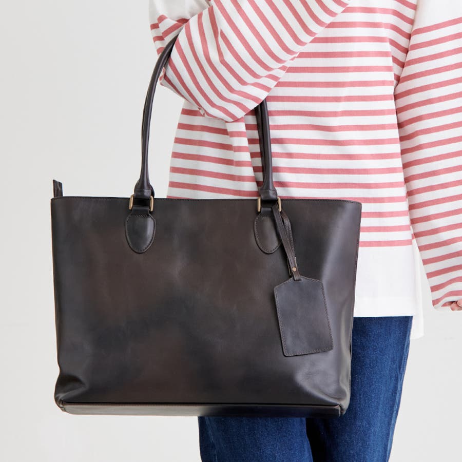 ・艶と独特なムラ感のある色調、しっとりとした風合いが特徴のアンティークレザーを使用しています。そのためひとつとして同じものがない、すべてが一点ものです。